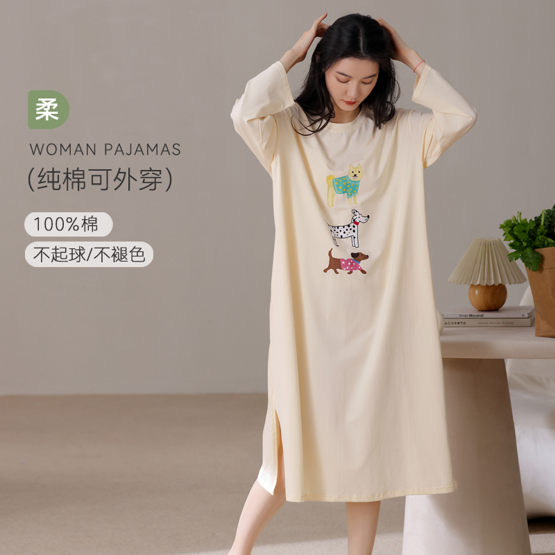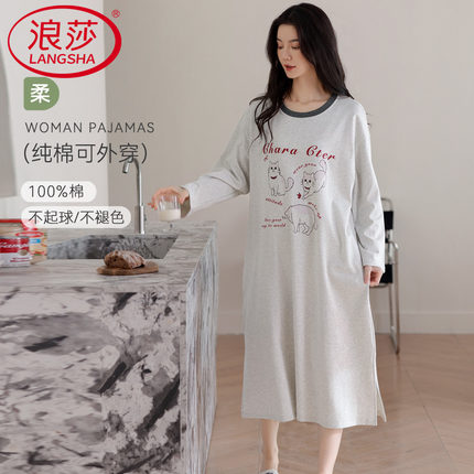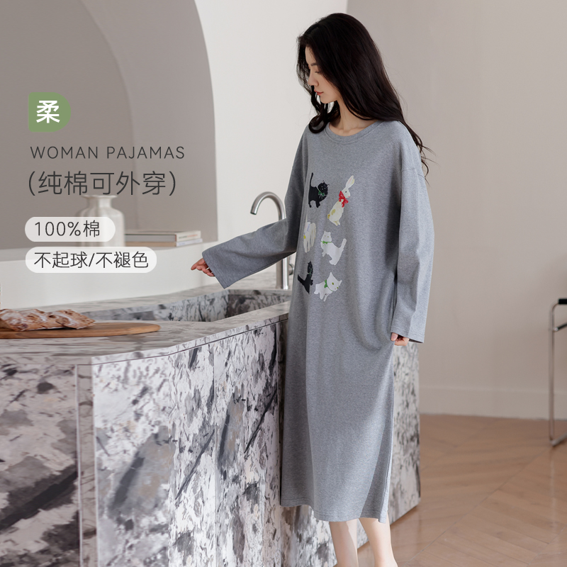 睡衣女款纯棉长款睡裙春秋季2025新款孕妇秋冬款长袖可外穿家居服