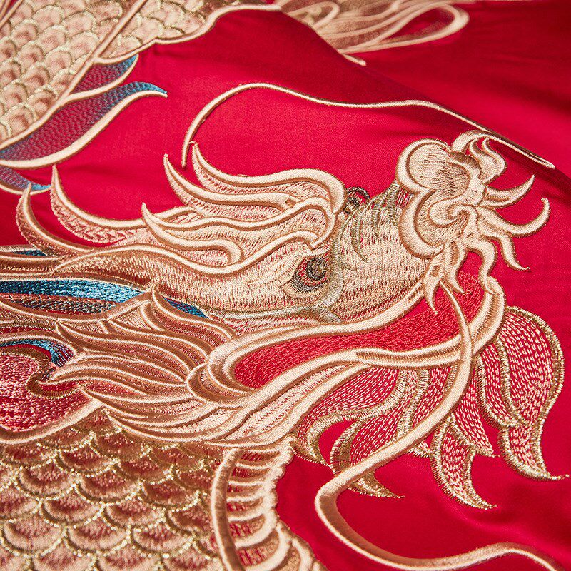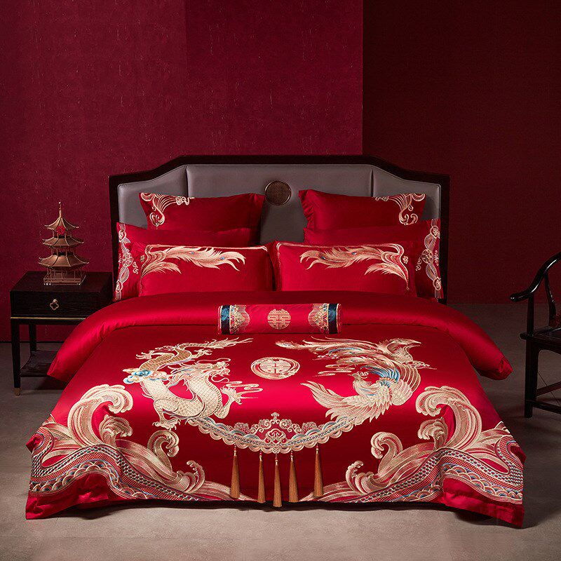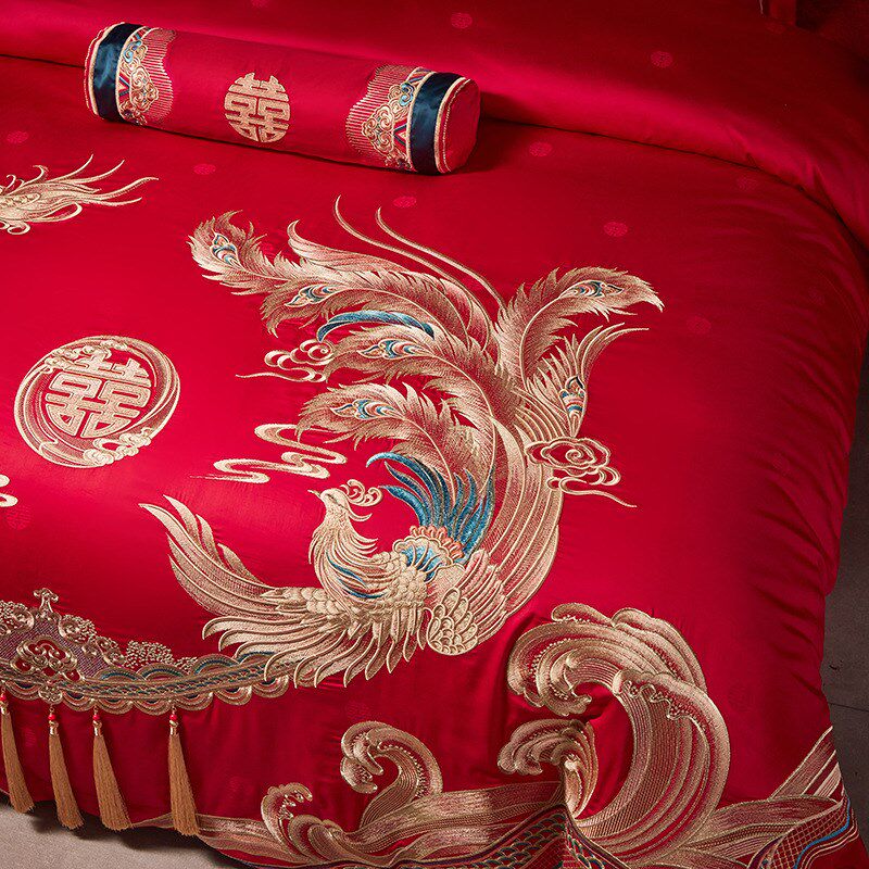 新中式红色婚房婚庆四件套100S长绒棉被套床单结婚喜被床上用