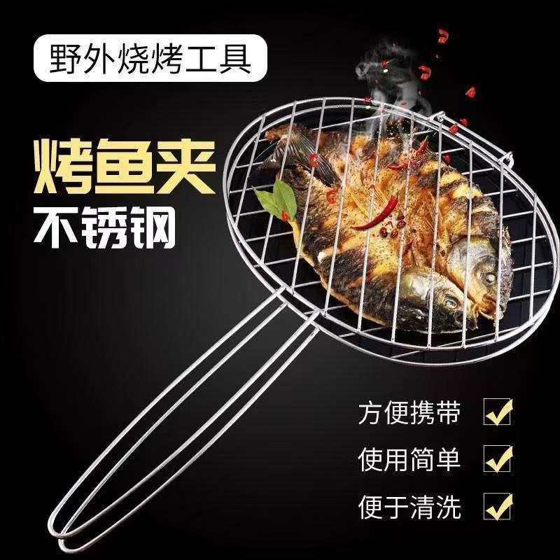 烤鱼夹子不锈钢烤鱼夹子烤鱼网夹烧烤网夹板圆形烧烤用具商用大号