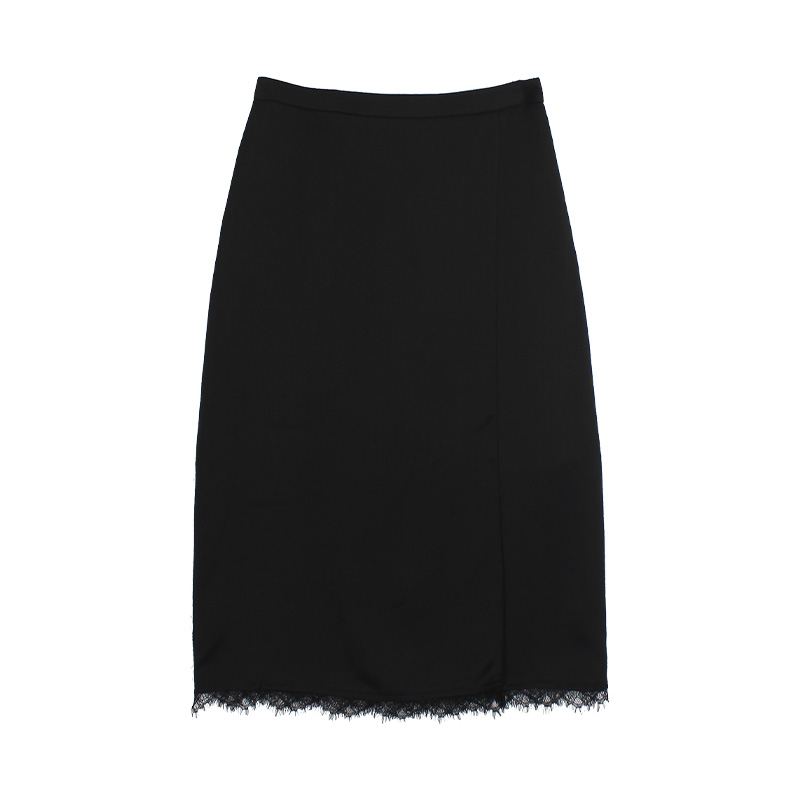 伊纳芙秋季新款高腰蕾丝边半身裙女中长款气质a字裙休闲百搭裙