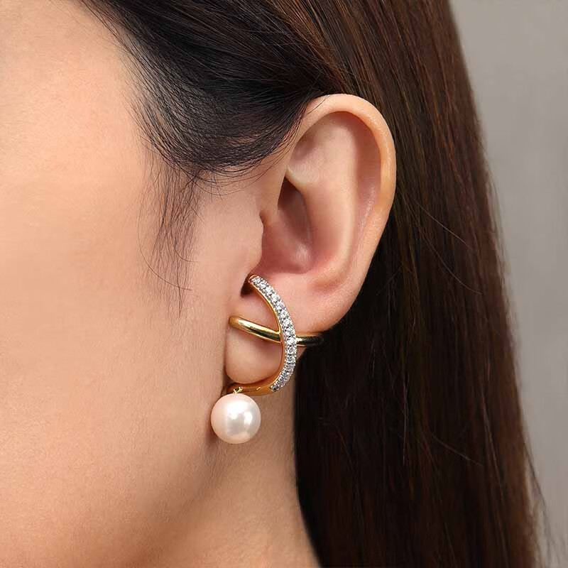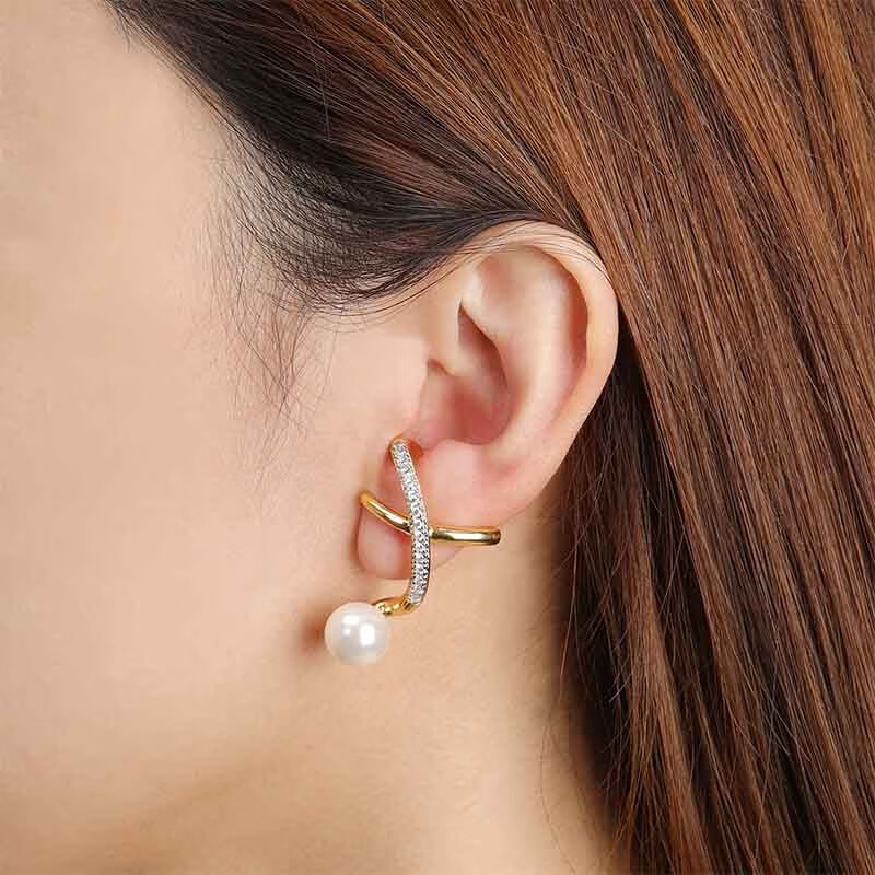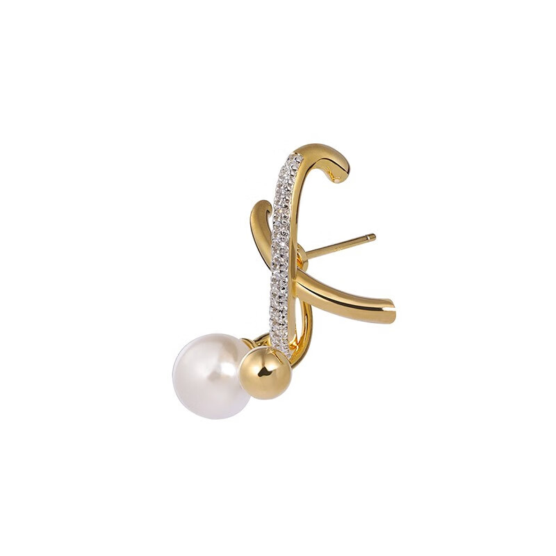 ARTE/艾尔蒂TOGGLE系列925银镀金小型白色立方氧化锆耳环