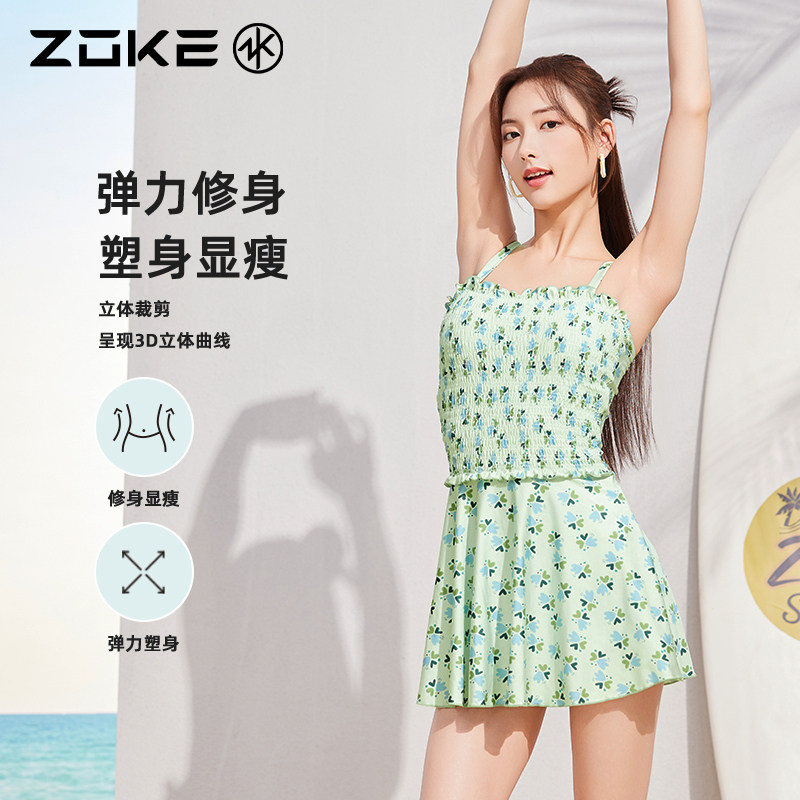 洲克女士绿色清新连体泡温泉度假泳衣女秋冬2025新款保守裙游泳衣