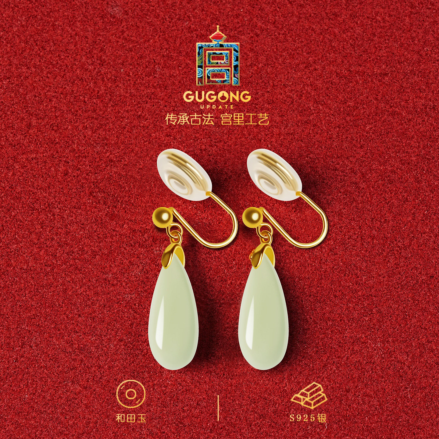 宫里上新耳夹女无耳洞和田玉耳饰玉石耳钉耳坠纯银生日礼物送妈妈