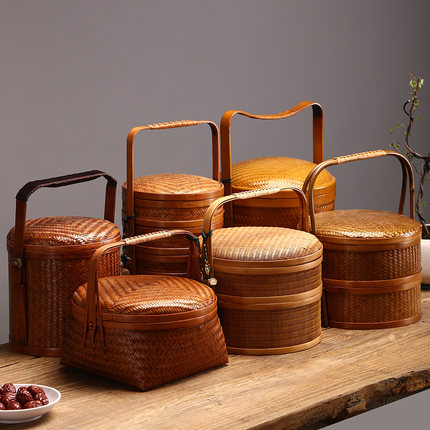 复古竹篮手工竹编食盒收纳盒礼盒茶具收纳仿古糕点篮中式古风提篮
