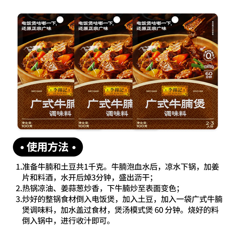 李锦记广式牛腩煲调味料100克家用秘制牛杂酱料汤料牛肉酱料包