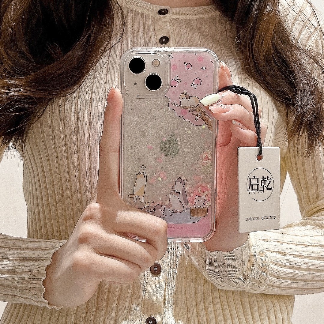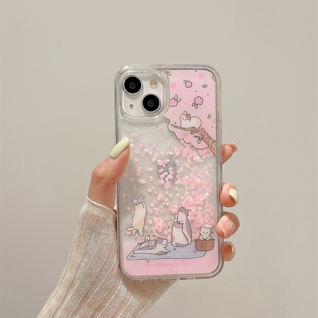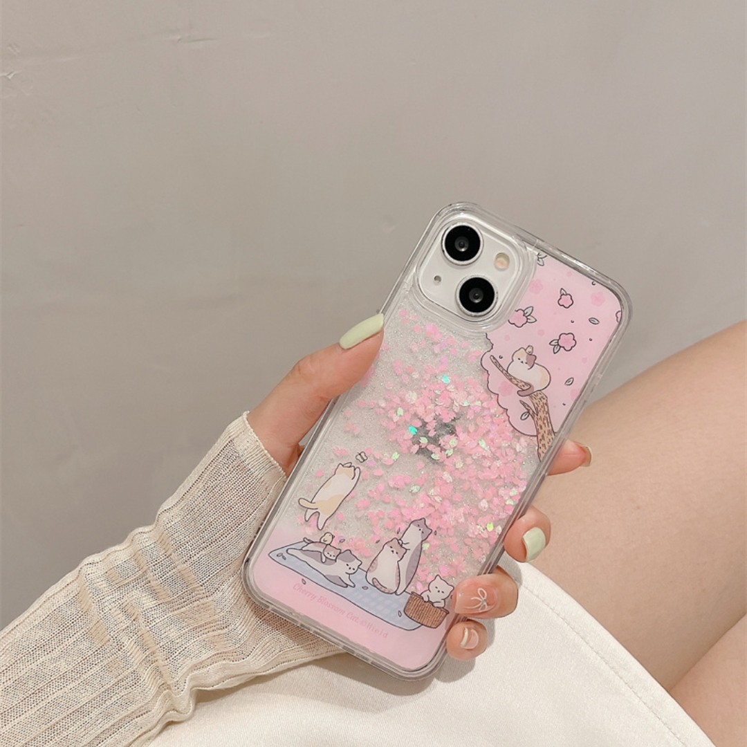粉色樱桃猫咪适用三星s24ultra手机壳s23+/s21fe流沙s8/a04少女心a15可爱a24新款a35卡通a52s/a53防摔a54/a71