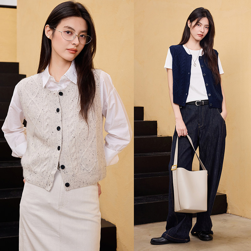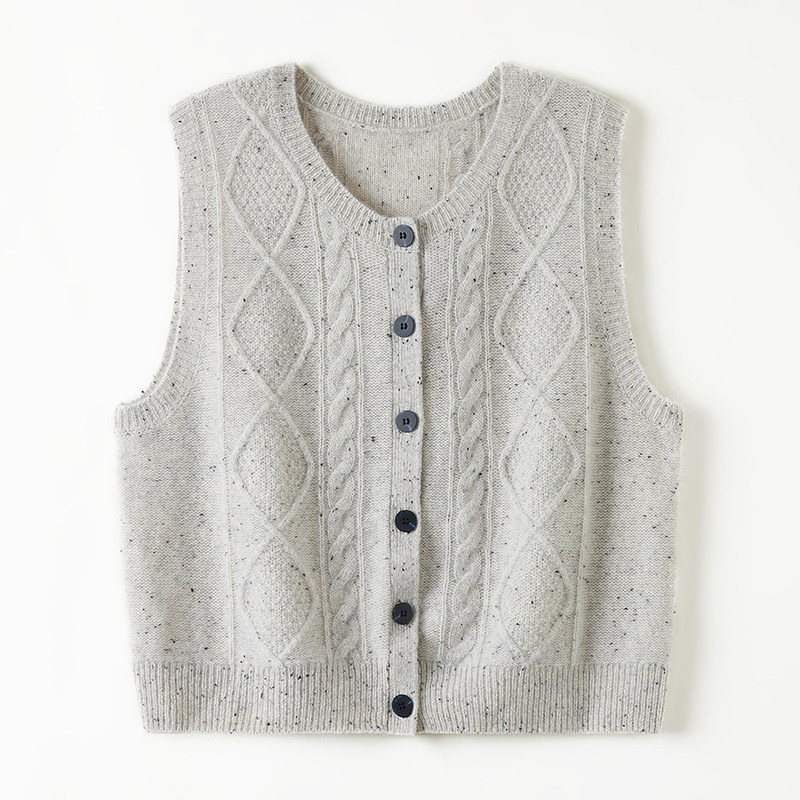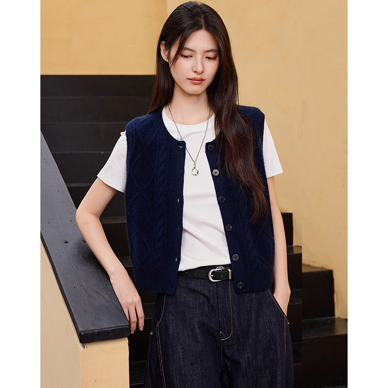 思诺芙德圆领绞花山羊绒马甲开衫
