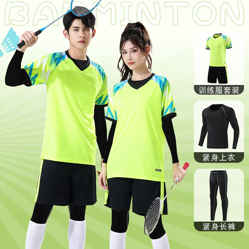 荧光绿羽毛球男女套装2025新款秋冬速干运动长袖定制排网球比赛服
