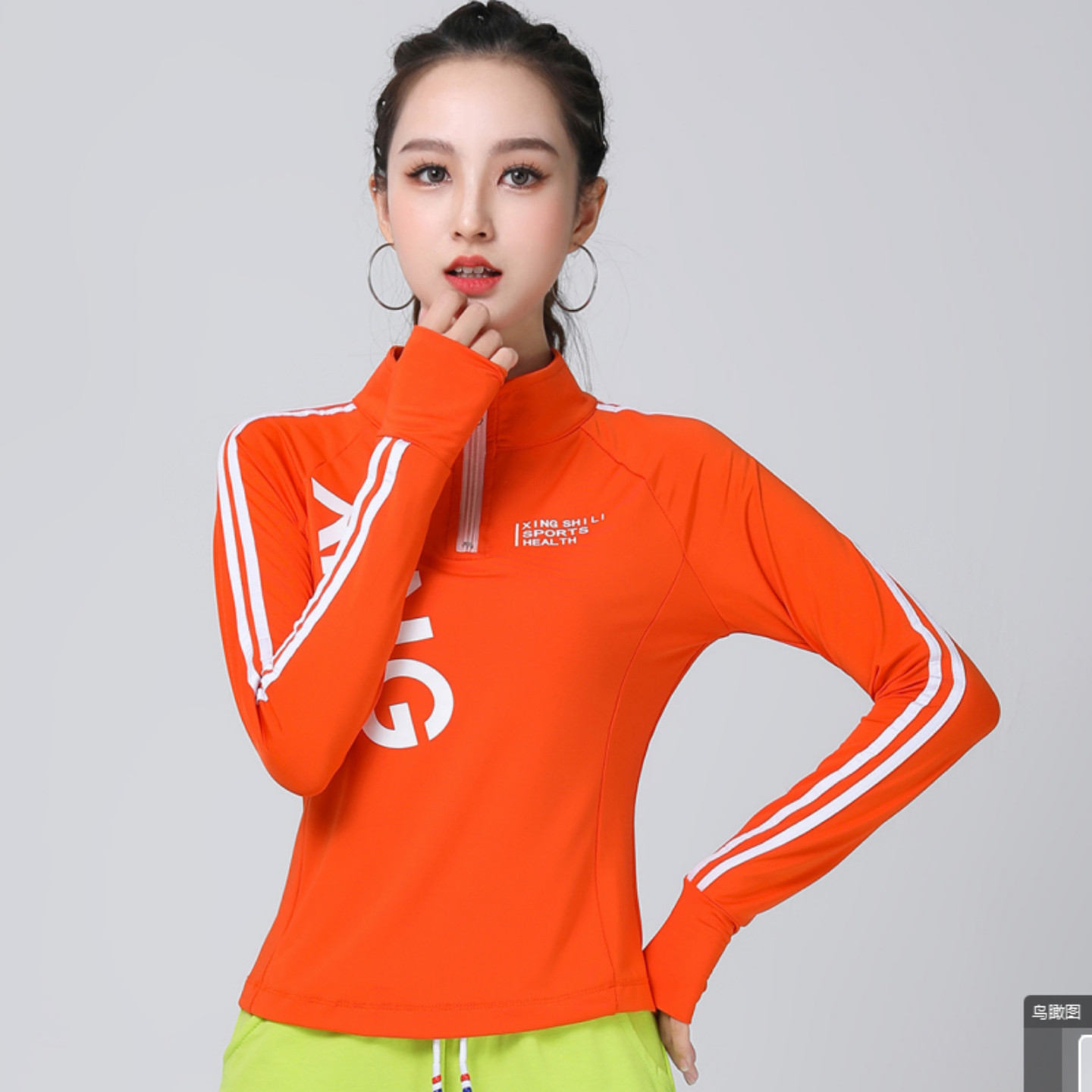 鬼步舞时尚运动速干健身操跳舞团体广场舞表演服上衣长袖女大码