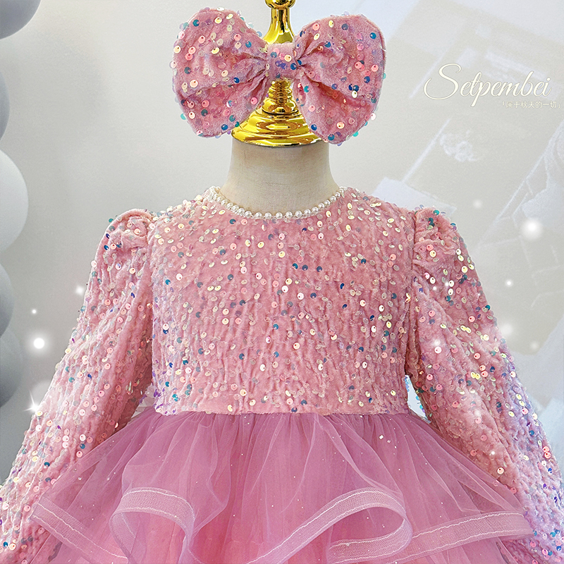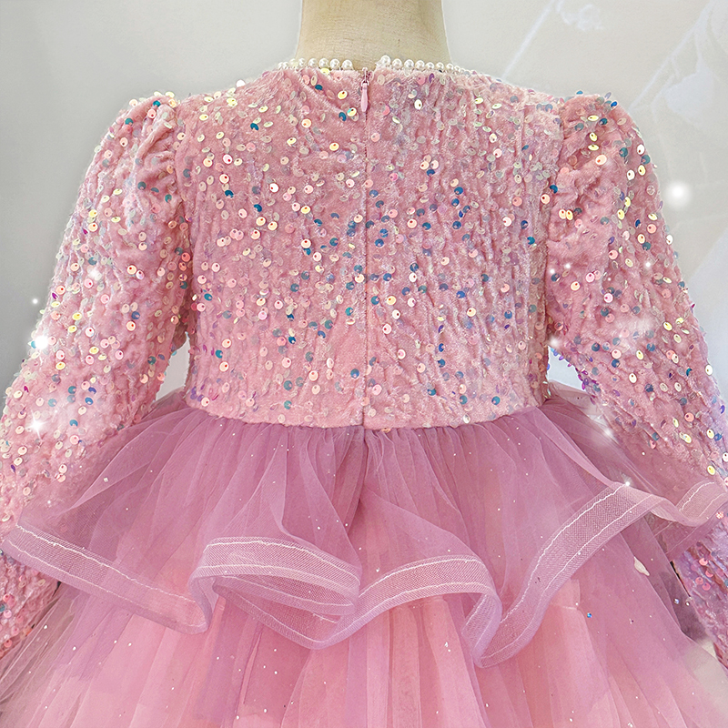 女童秋冬粉色亮片公主连衣裙