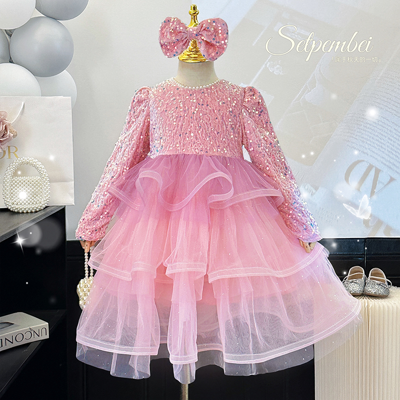 女童连衣裙春秋洋气宝宝高级感生日礼服蛋糕裙儿童时髦亮片公主裙