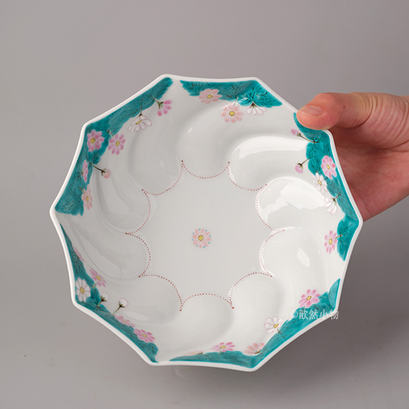 日本知名作家器 大兼政花翠 手绘樱花深钵 果盘 大号汤碗