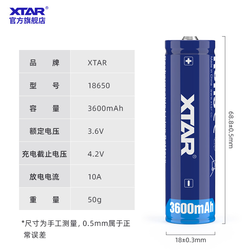 XTAR爱克斯达18650 3600mAh强光手电可充电带板锂电池3.6v