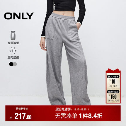 ONLY冬季纯色宽松显瘦高腰针织运动卫裤弯刀裤香蕉裤女休闲裤子