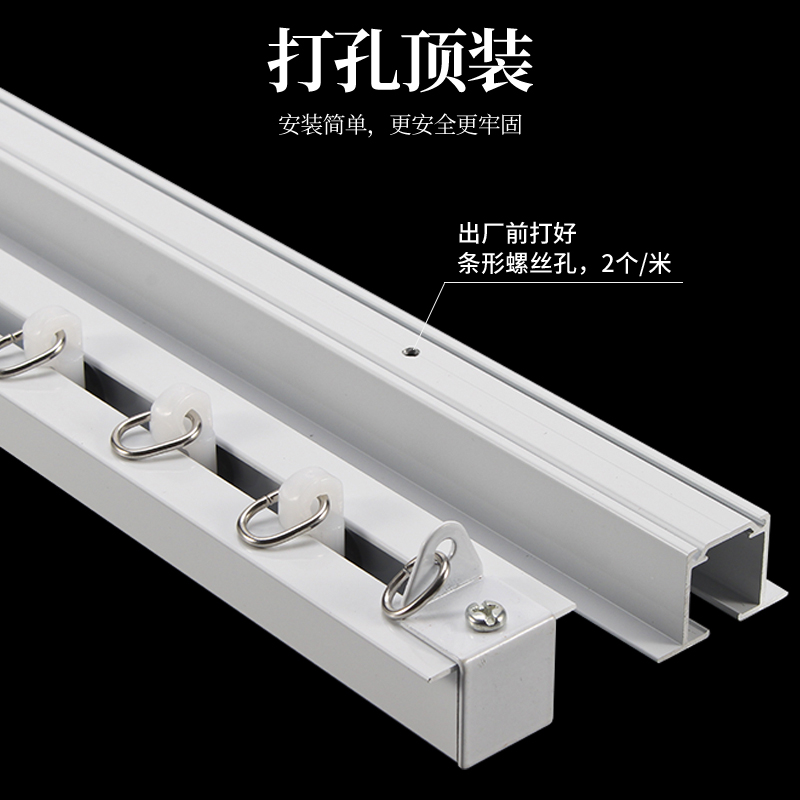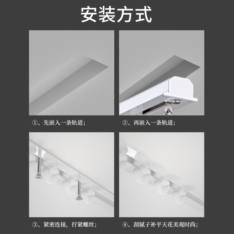窗帘轨道滑轮双轨静音隐形顶装内嵌入式预埋挂钩式铝合金导轨滑轨