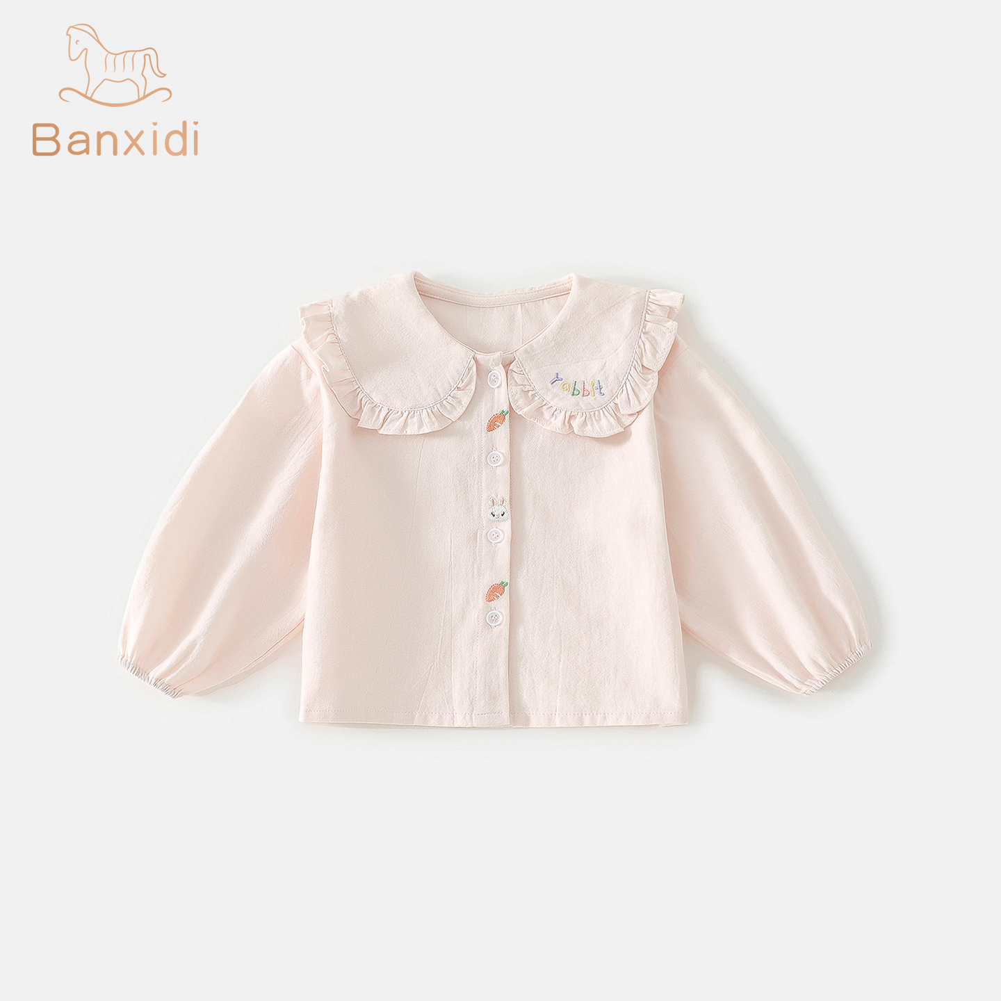 班喜迪女童衬衫春秋款2025新款洋气女宝宝长袖上衣儿童娃娃衫秋装