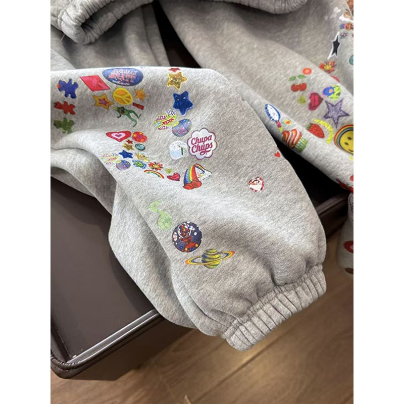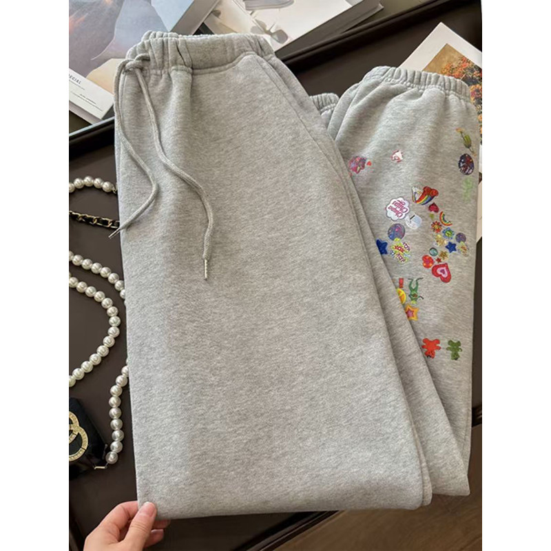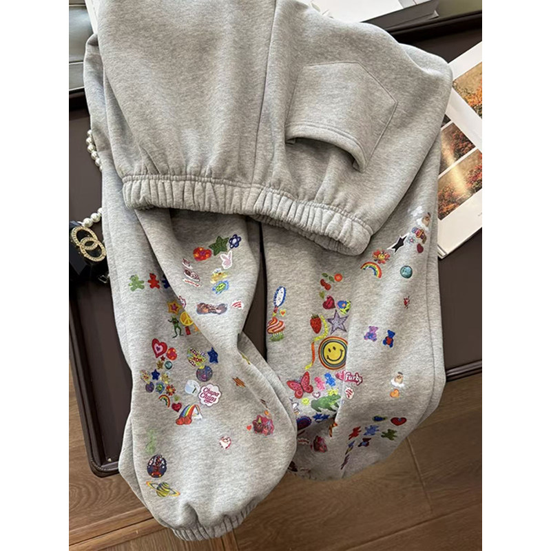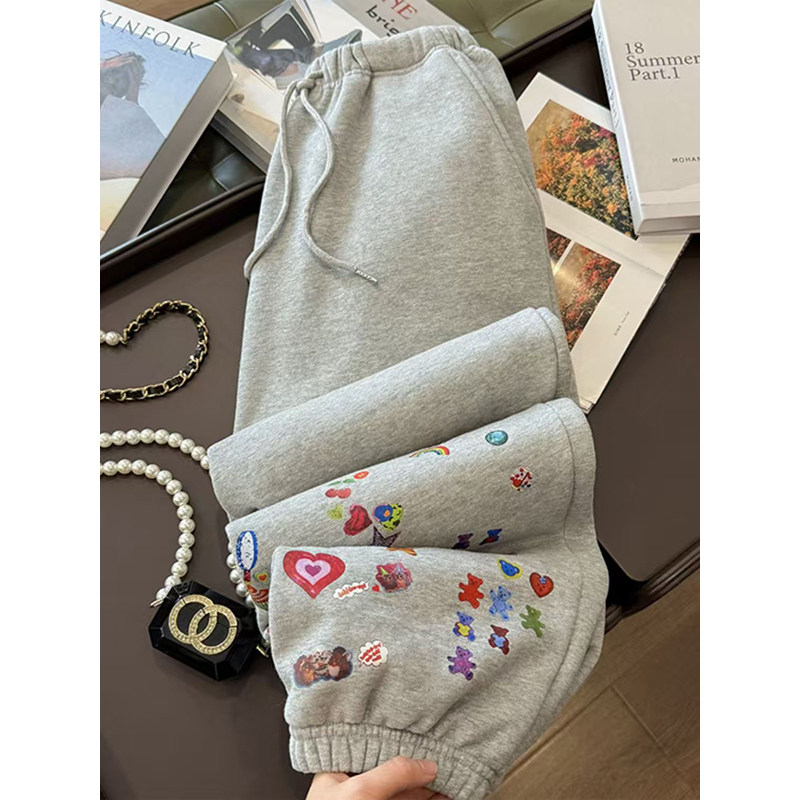 特大码300斤彩色卡通印花童趣风休闲裤男女装春秋薄款宽松束脚裤2