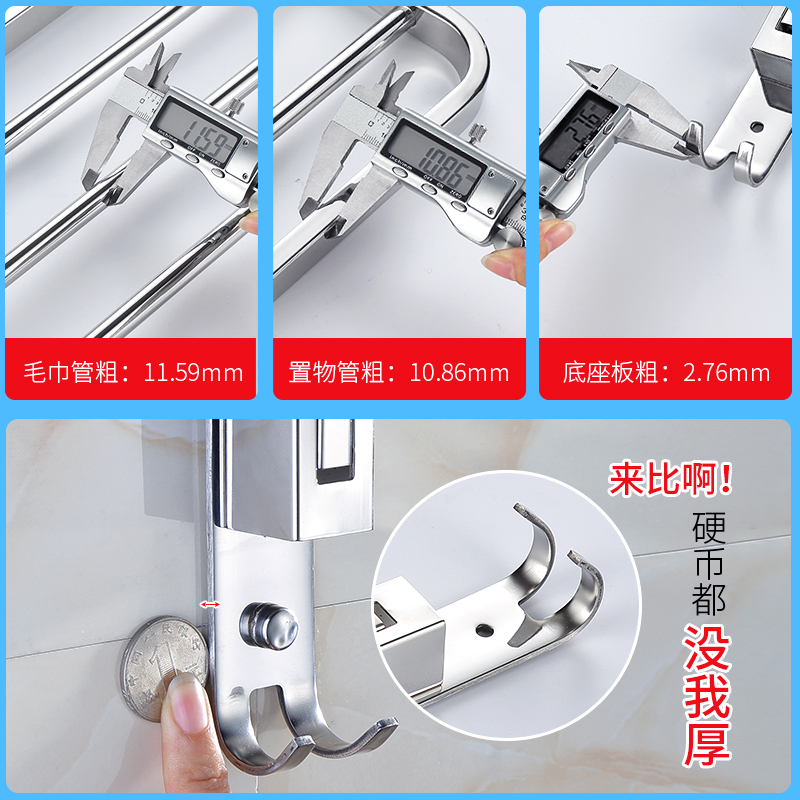 毛巾架免打孔 卫生间不锈钢304浴室厕所置物架浴巾架卫浴挂件壁挂