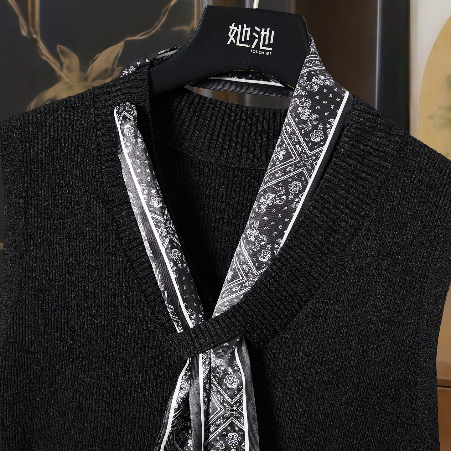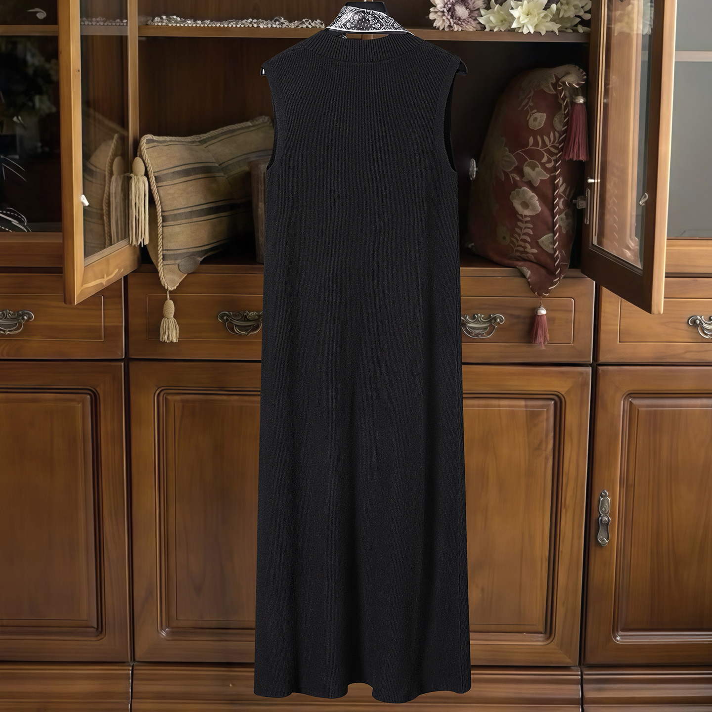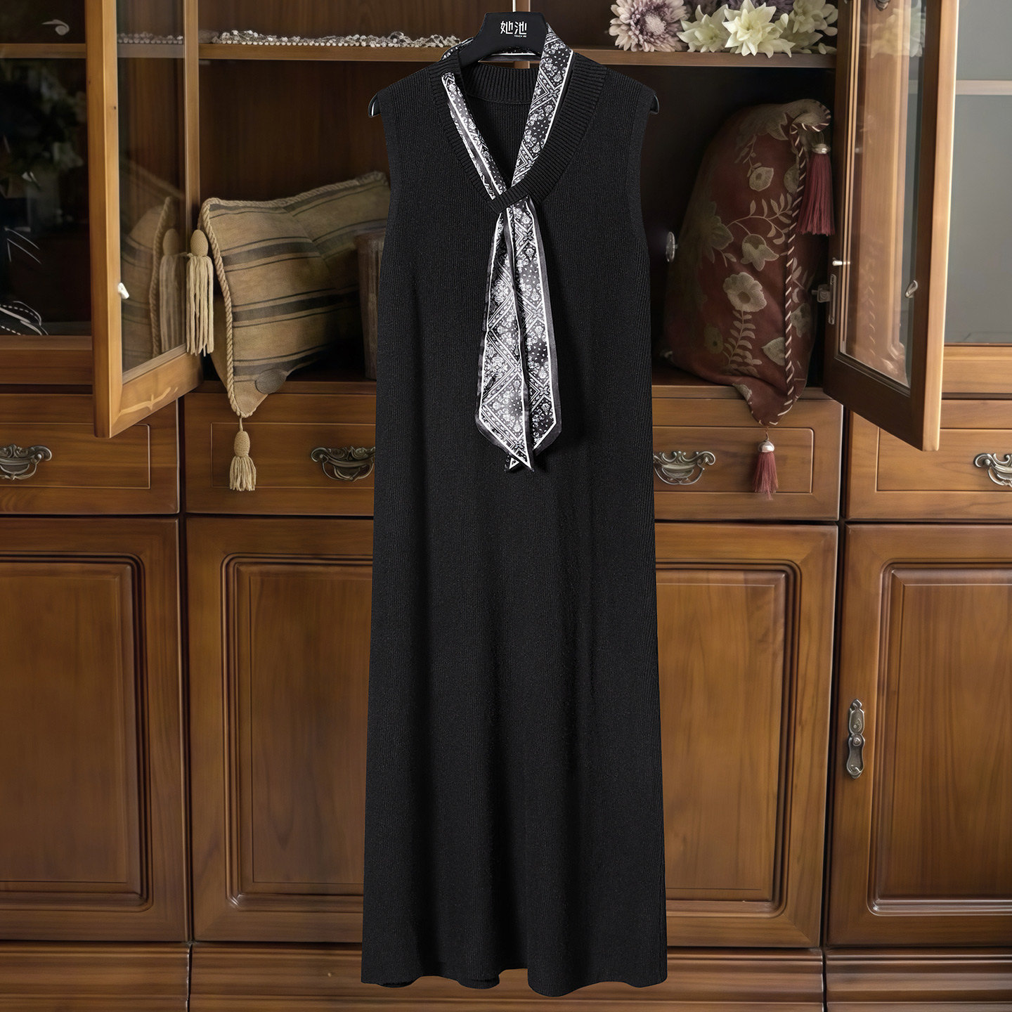 她池V领连衣裙2025秋装新款女装修身简约套头A字长款针织背心裙