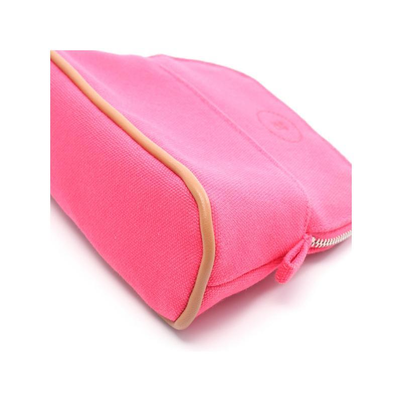 中古Hermes爱马仕女包S级99新bolide保龄球帆布化妆包粉色RECLO
