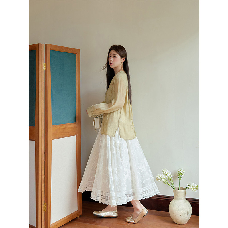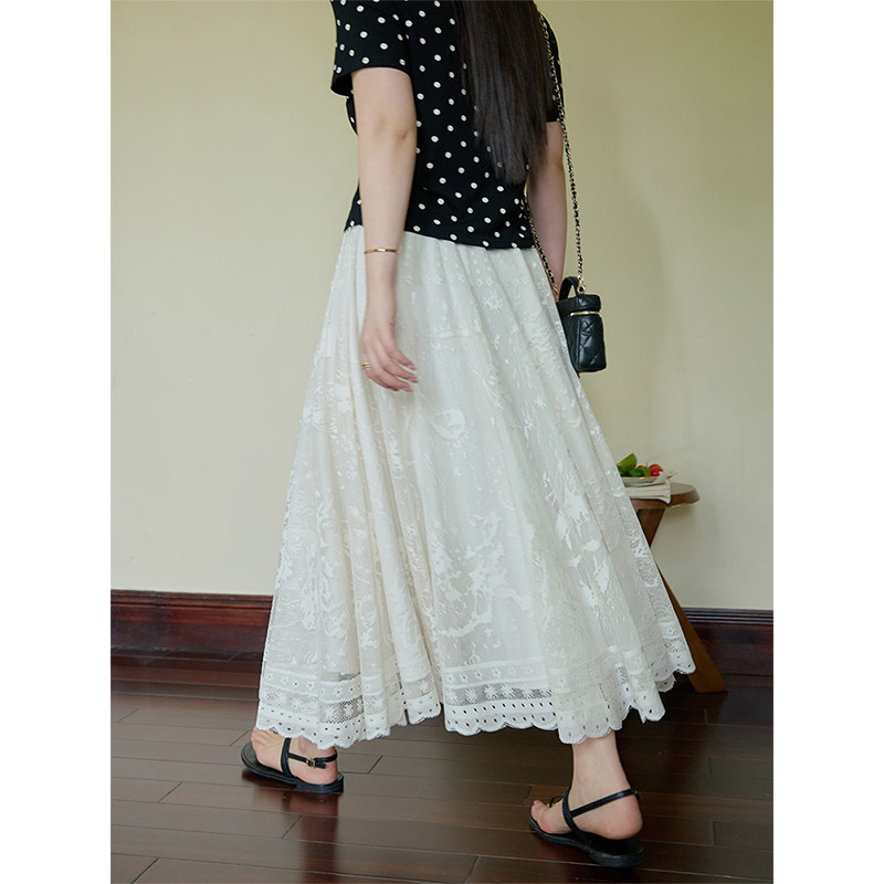 潘不卷大码女装微胖mm白色百搭蕾丝半身裙2025夏新品遮胯显瘦长裙