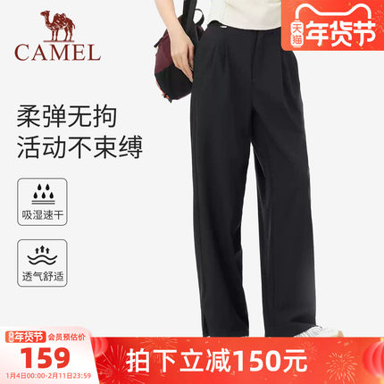 骆驼女装休闲裤高腰显瘦2025夏季新款透气吸湿速干休闲直筒西装裤