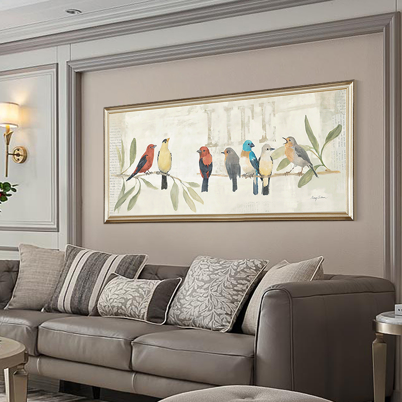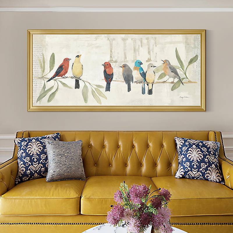 现代美式挂画沙发背景墙装饰画简欧小鸟单幅横版餐厅卧室床头挂画