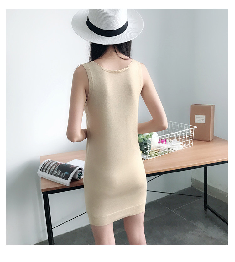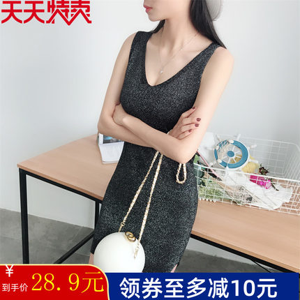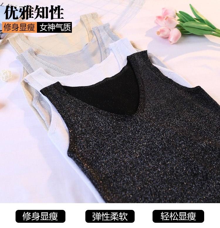 春秋季吊带背心女中长款V领针织亮丝修身显瘦背心裙大码夏打底衫