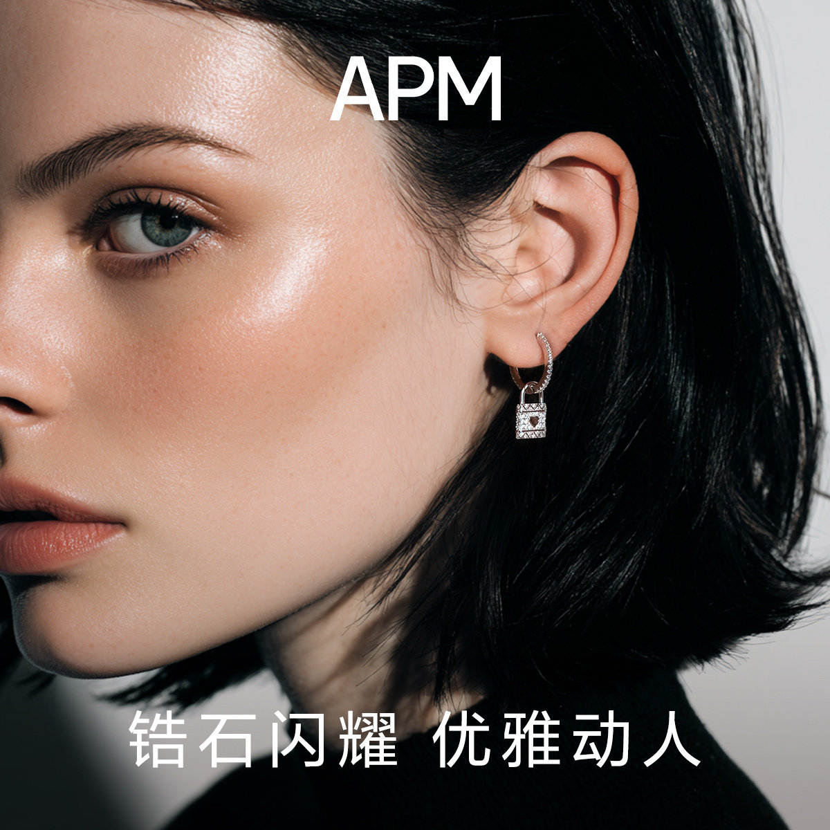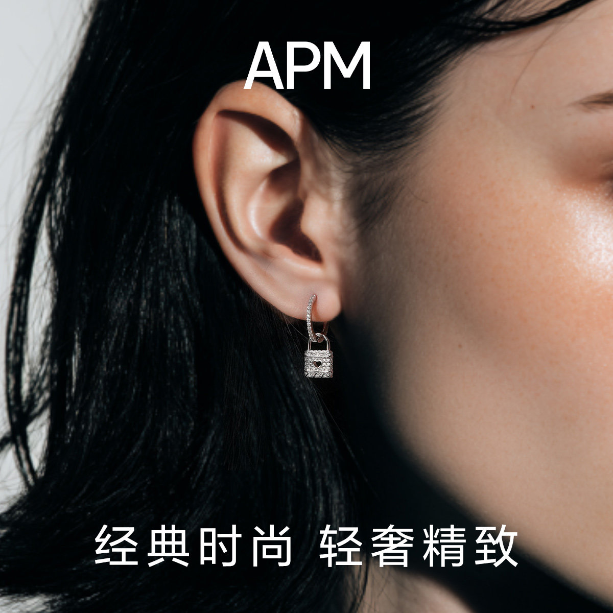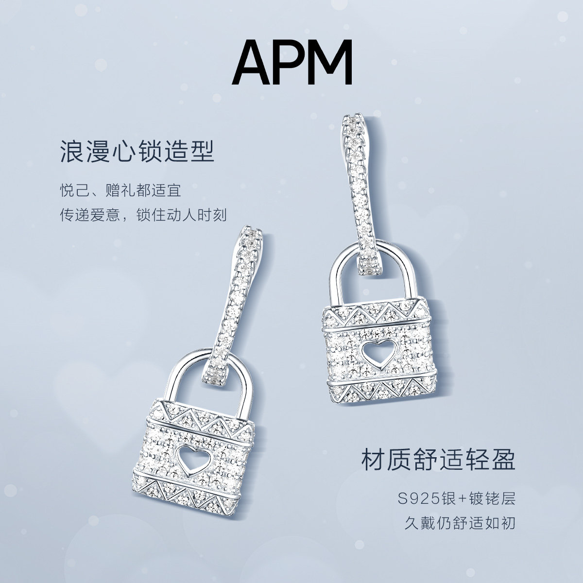 【生日礼物】apm MONACO迷你镶石爱心锁耳环时尚生日礼物送女友