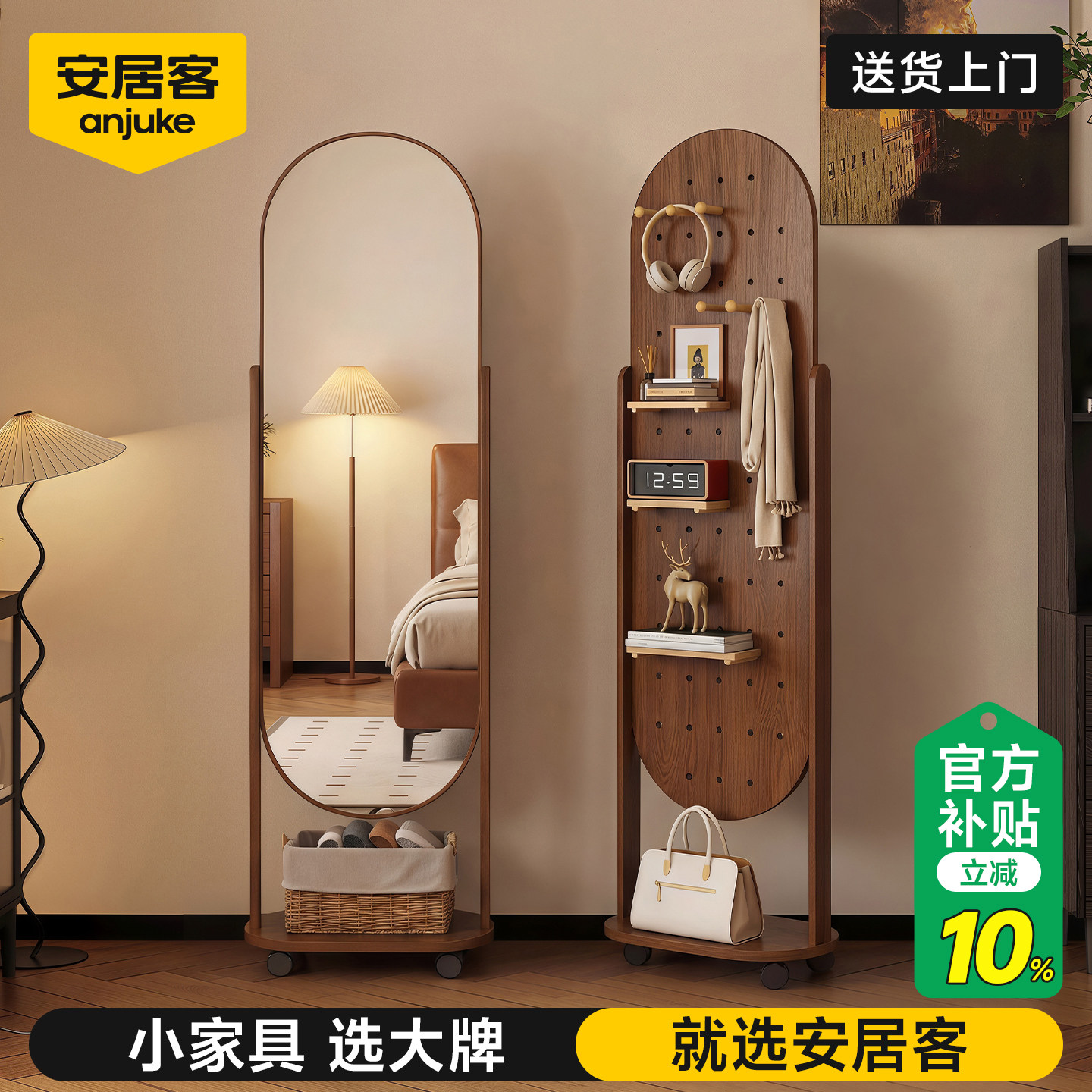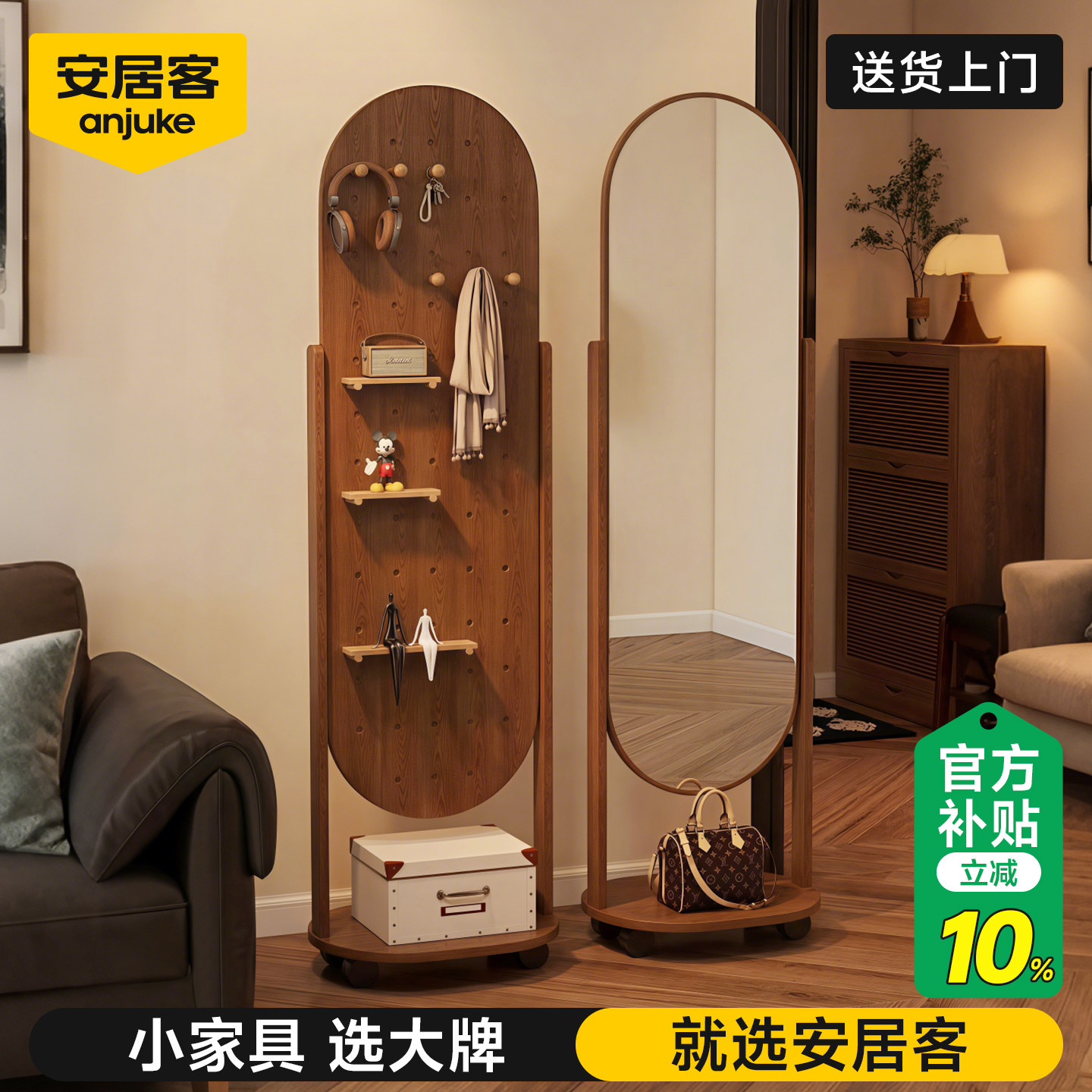 安居客全身镜落地镜家用可移动洞洞板穿衣镜中古网红卧室试衣镜子