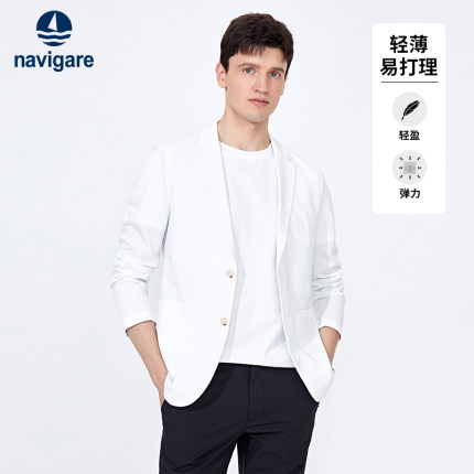 Navigare意大利小帆船春季薄款休闲白色西服男高级感商务西装外套