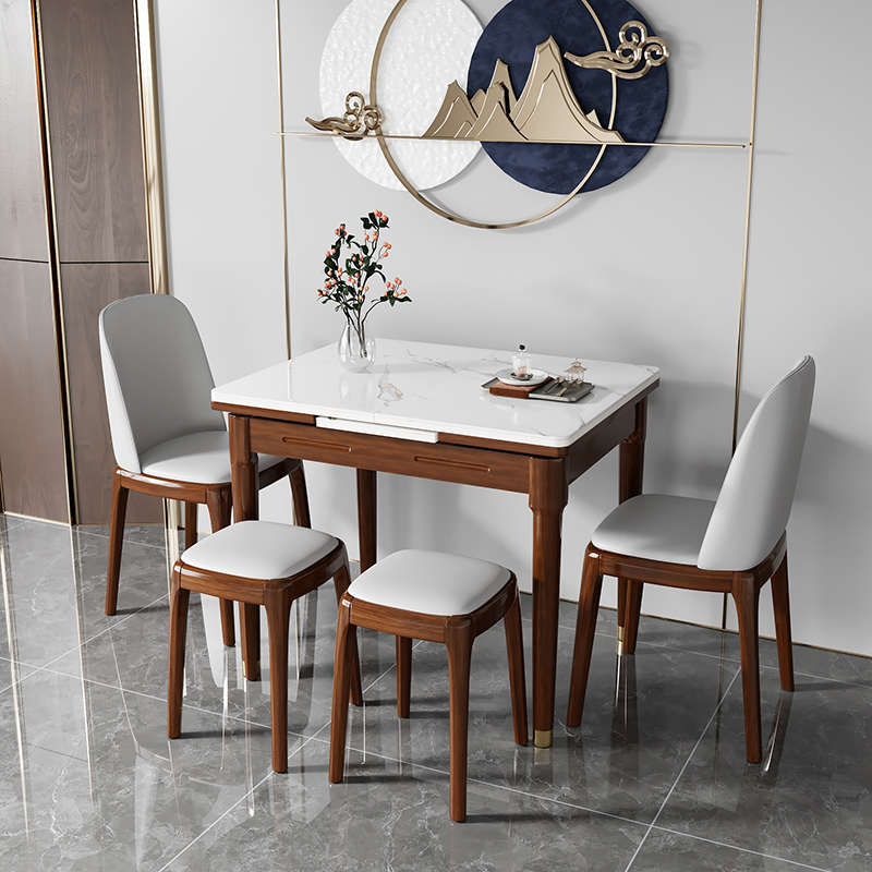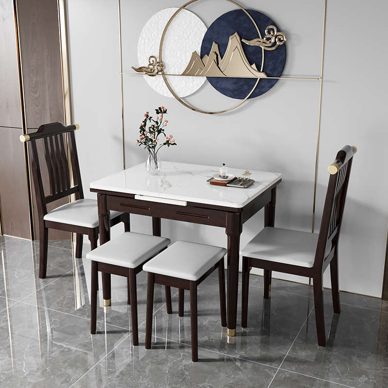 新中式伸缩岩板桌椅组合小户型可折叠实木家用长方形饭桌省空间