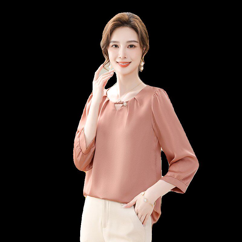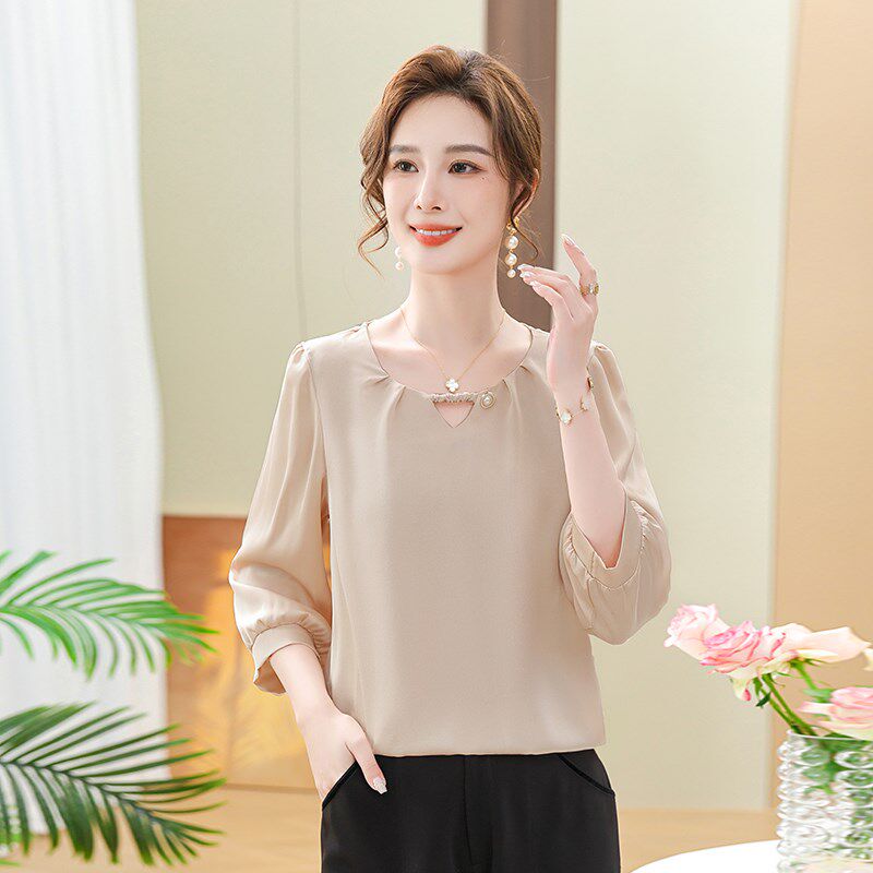 中年妈妈春装中袖小衫2024新款时尚雪纺衫上衣中老年女夏装两件套