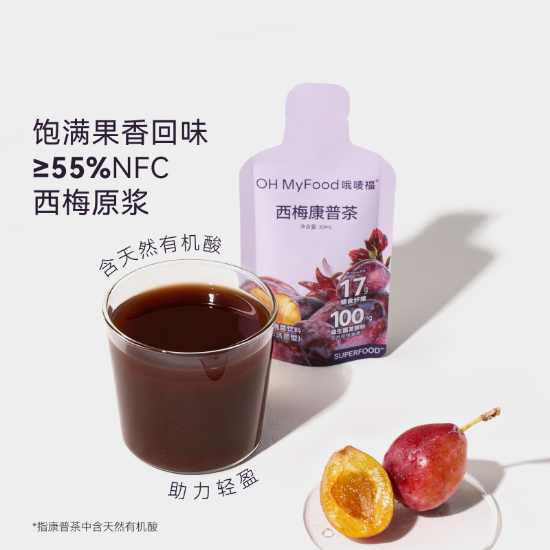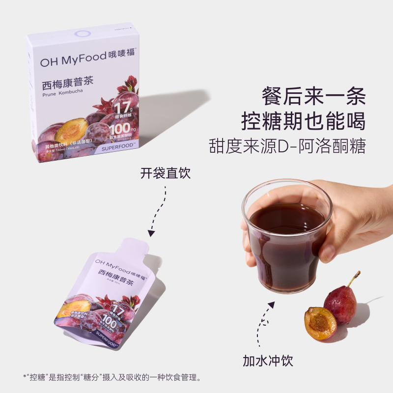 ohmyfood西梅康普茶原液益生菌康普茶发酵液冲饮