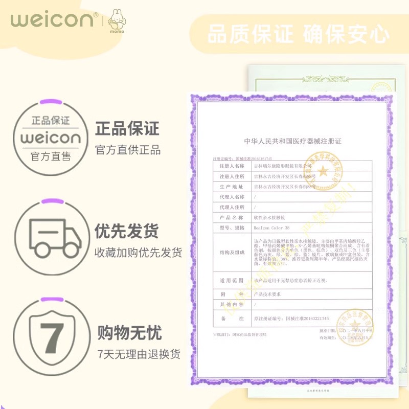 卫康MOMO兔联名美瞳半年抛1片装*2彩色隐形近视眼镜女旗舰店正品