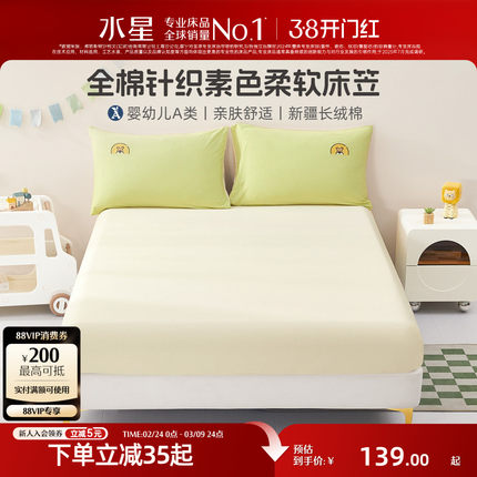 水星家纺全棉床笠单件儿童母婴A类针织长绒棉床垫保护罩简约床品