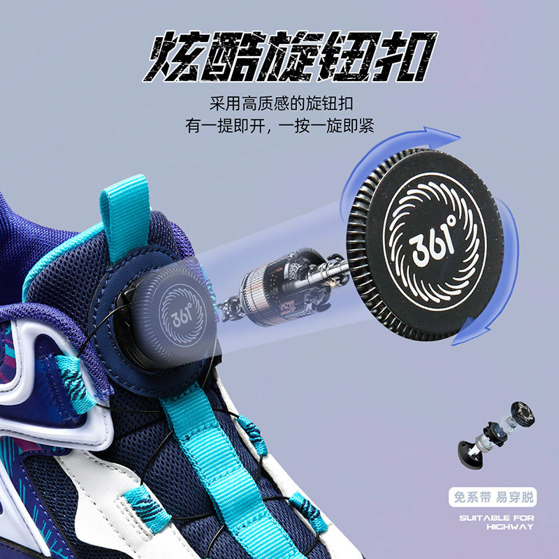 悍将|361童鞋儿童篮球鞋男童运动鞋冬季青少年防滑中大童旋钮鞋子