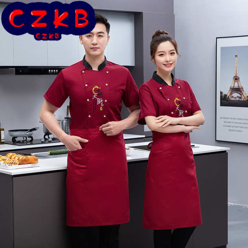 厨师工作服男短袖夏季薄款透气网眼加肥加大后厨房餐饮中国风套装