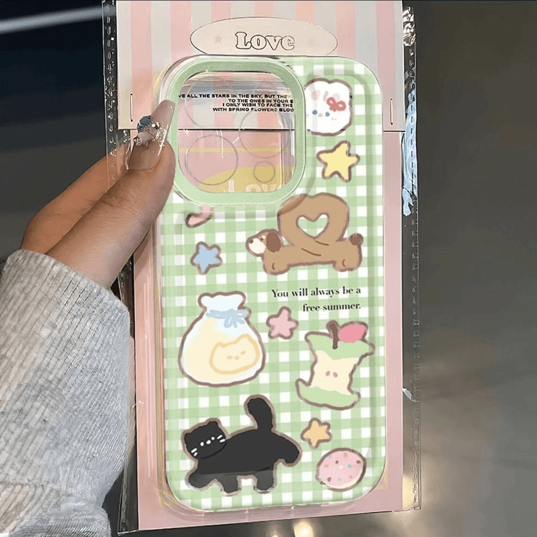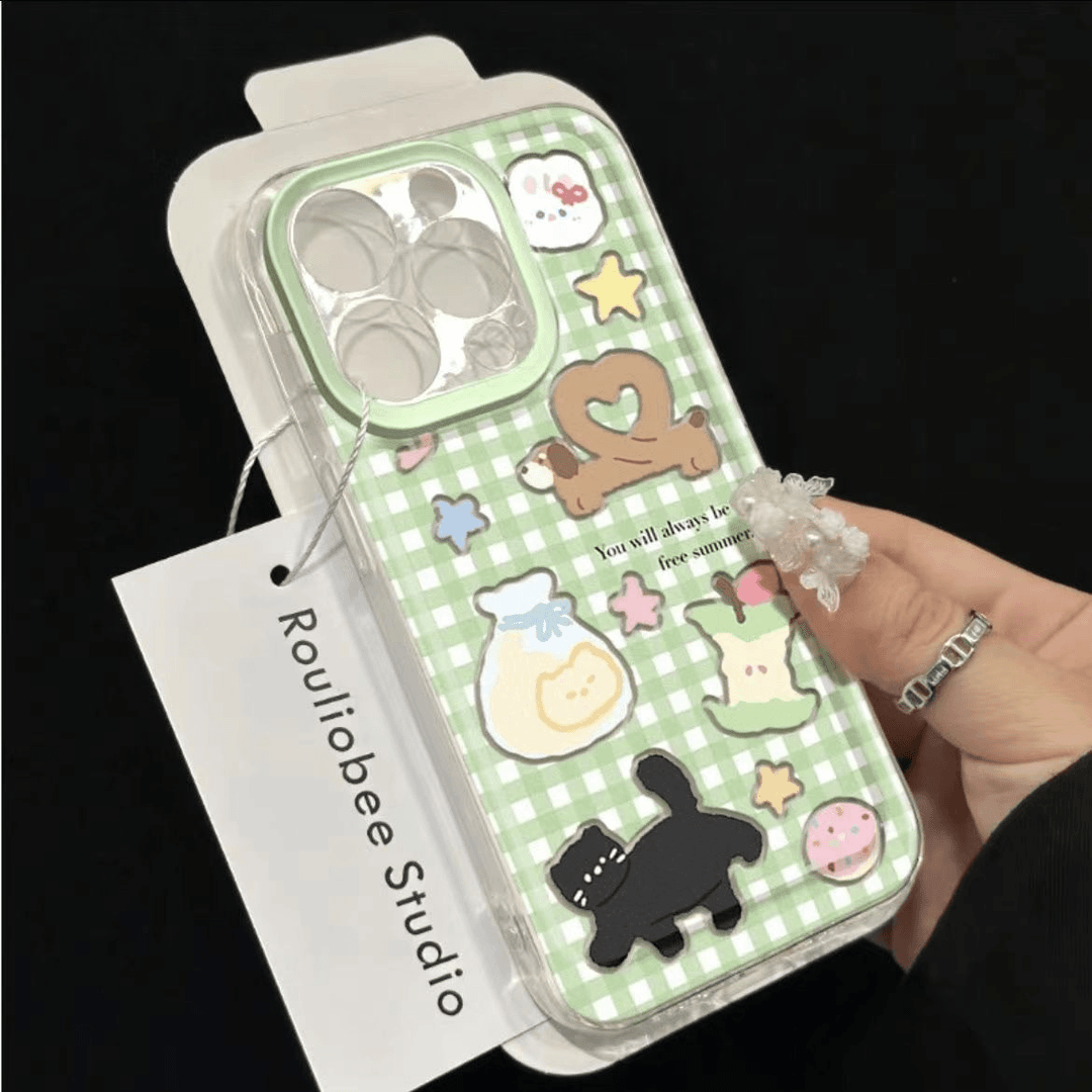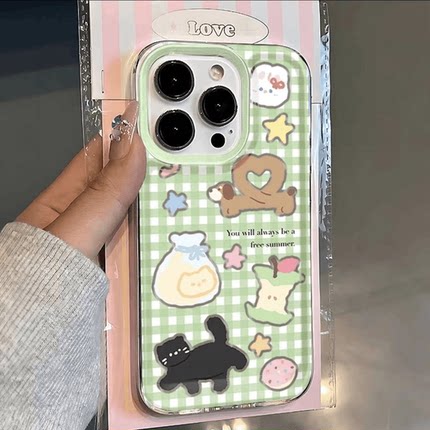 适用绿格小狗苹果16E手机壳iPhone15promax透明14plus太空13mini可爱12卡通11新款8防摔7保护套xsmax男6s女xr