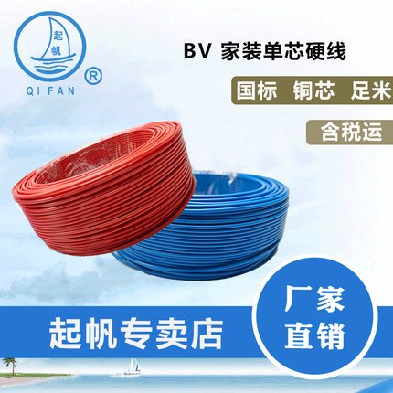 起帆电线bv单芯硬线家用家装电缆国标2.5 4 6平方铜芯铜线