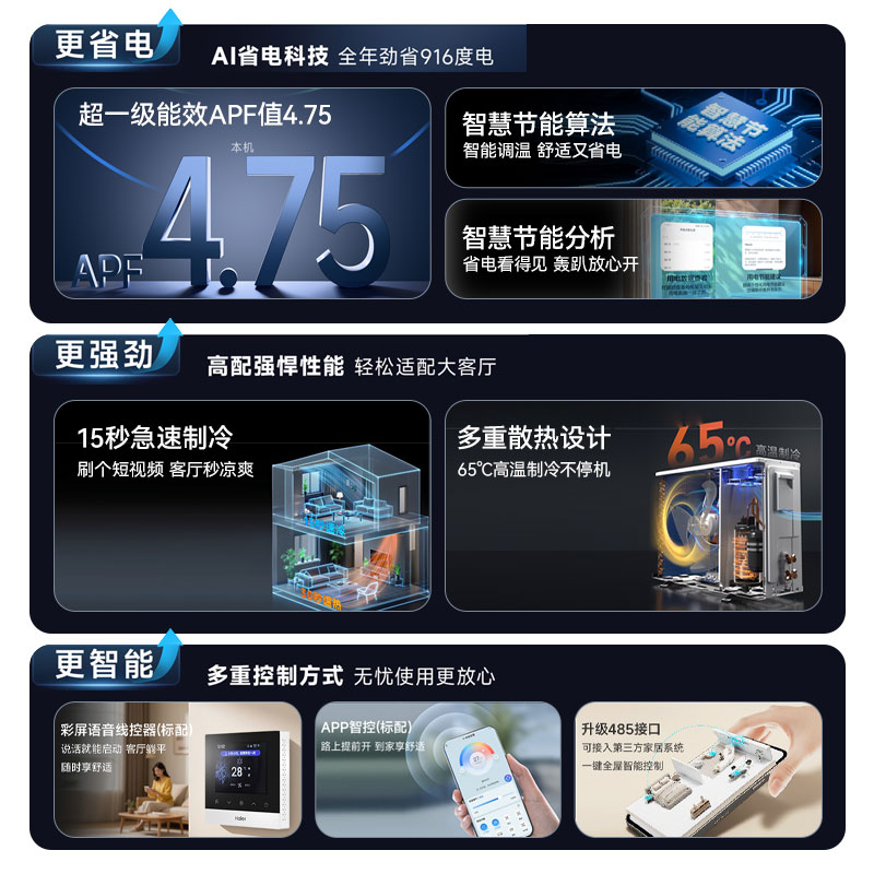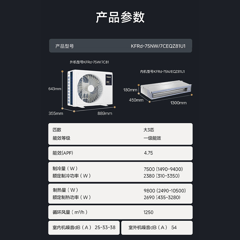 海尔中央空调净省电3匹2匹风管机变频智能一拖一家用4匹别墅客厅