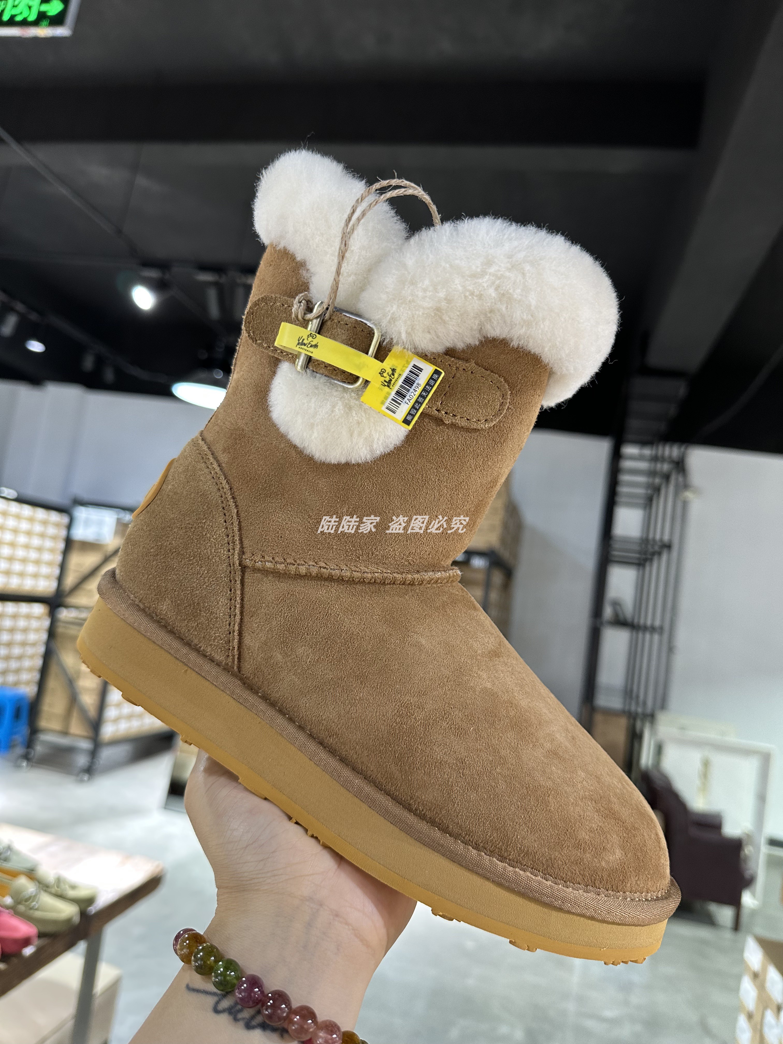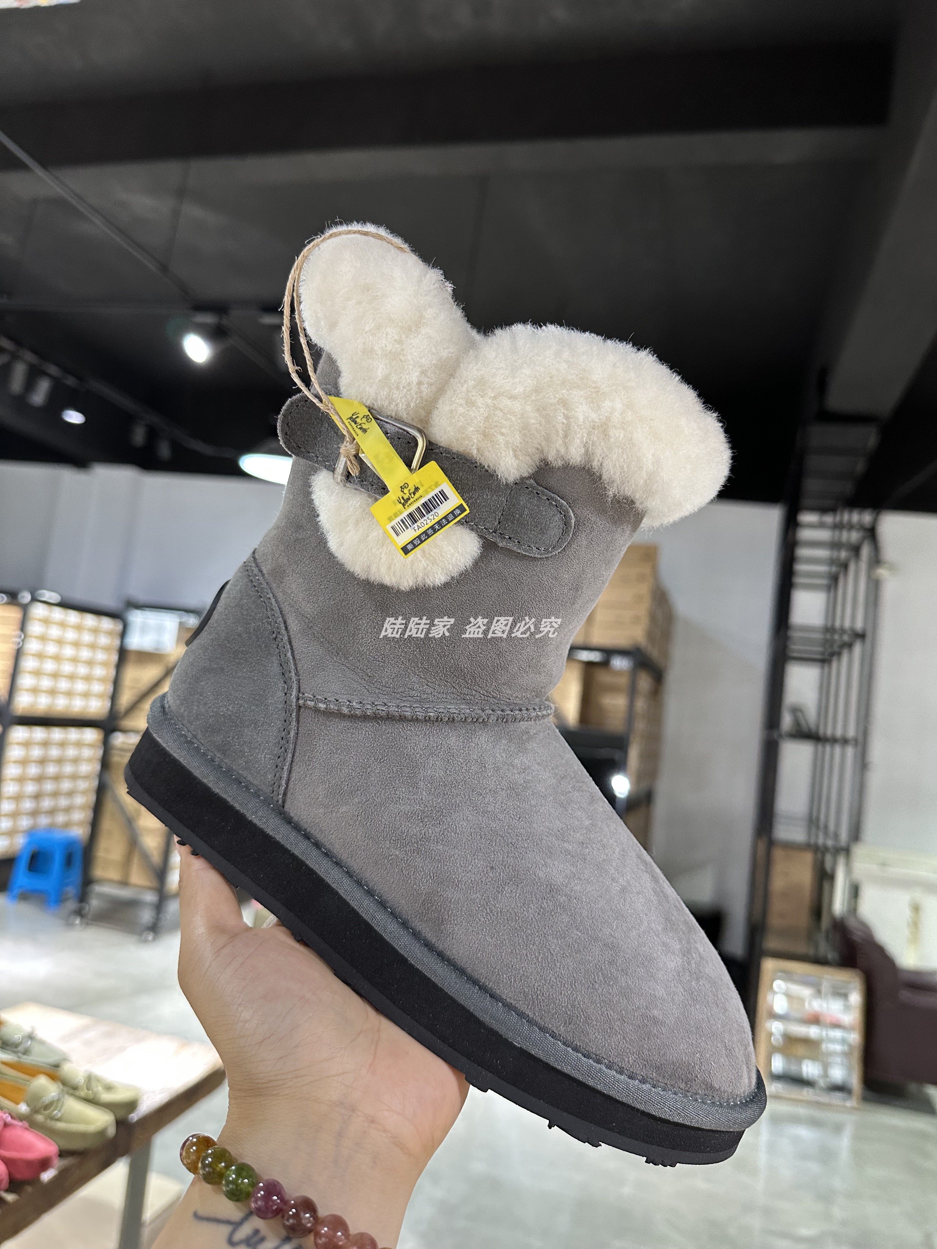 Yellow Earth澳洲羊皮毛一体雪地靴女a款侧搭扣毛边低靴翻毛短靴