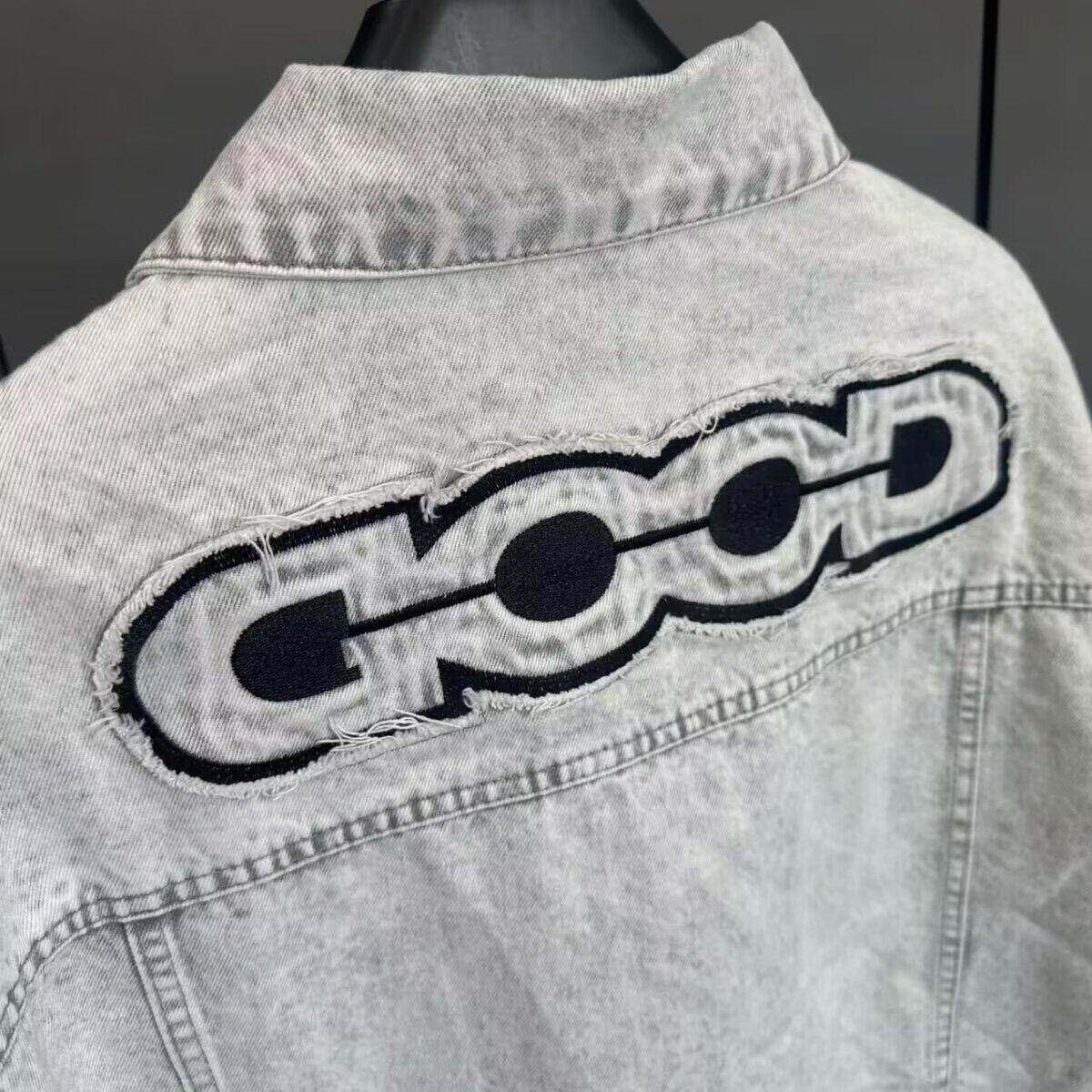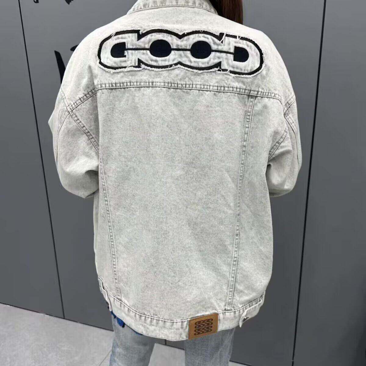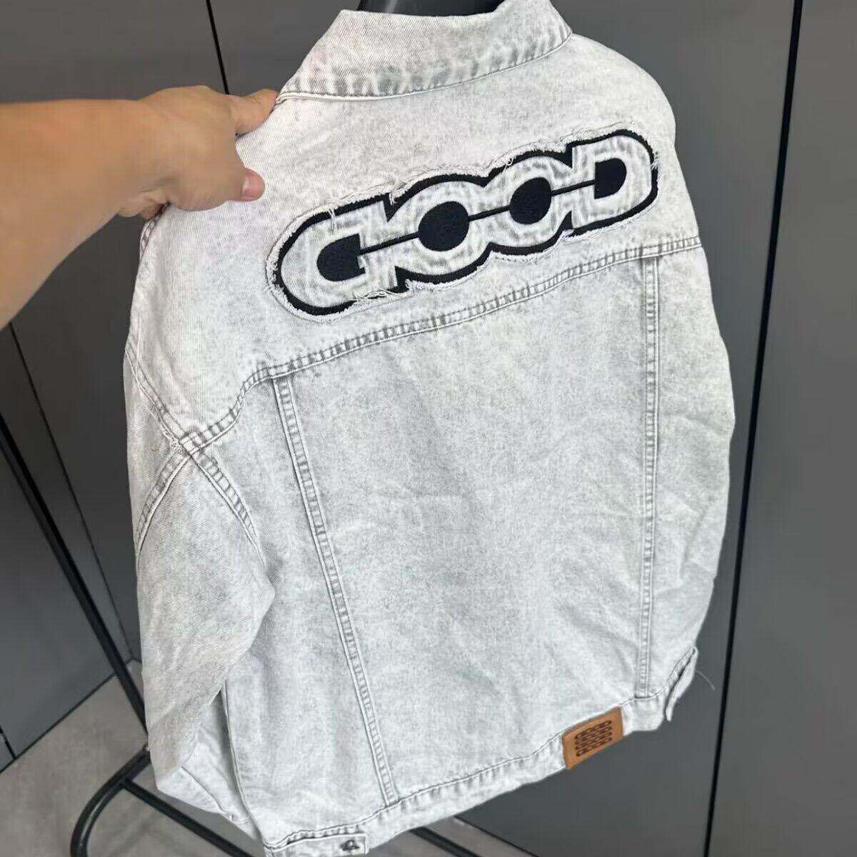 秋冬网红同款GOO字母刺绣水洗牛仔夹克男女翻领上衣高品质外套ins