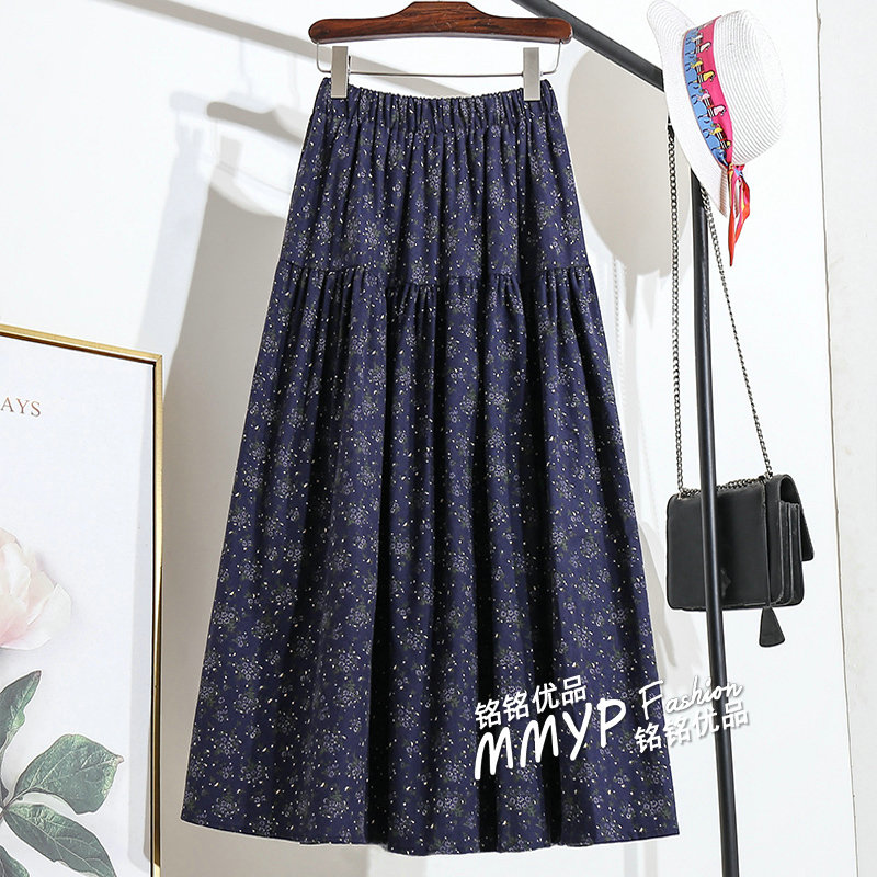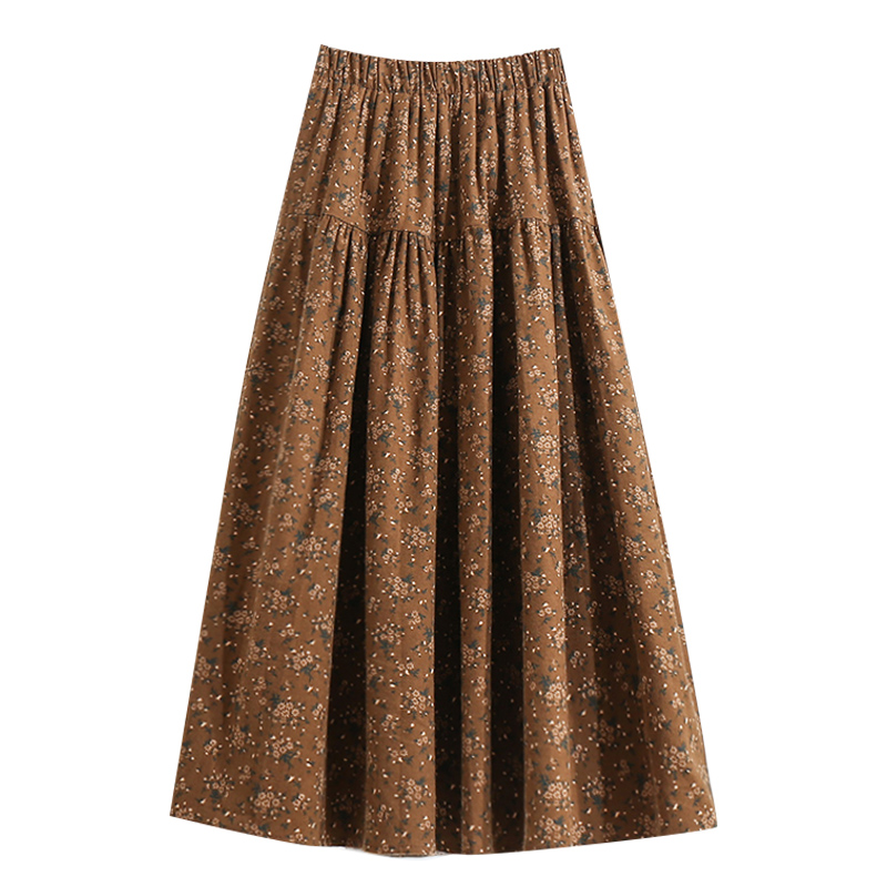 秋季复古磨毛小碎花半身裙棉女秋冬2025新款棉布裙子半裙花裙长裙