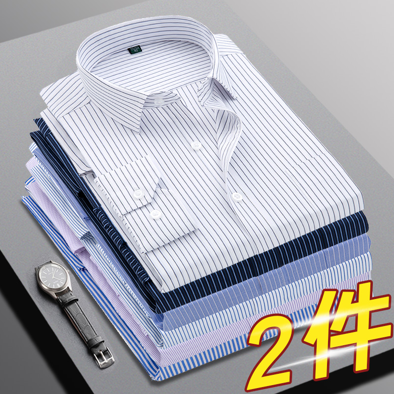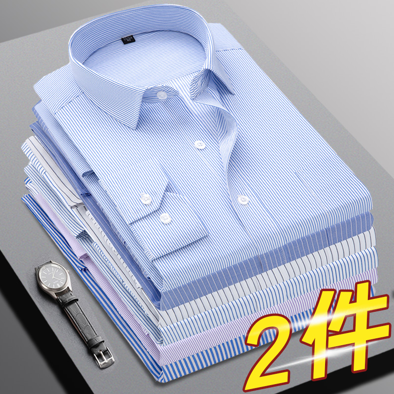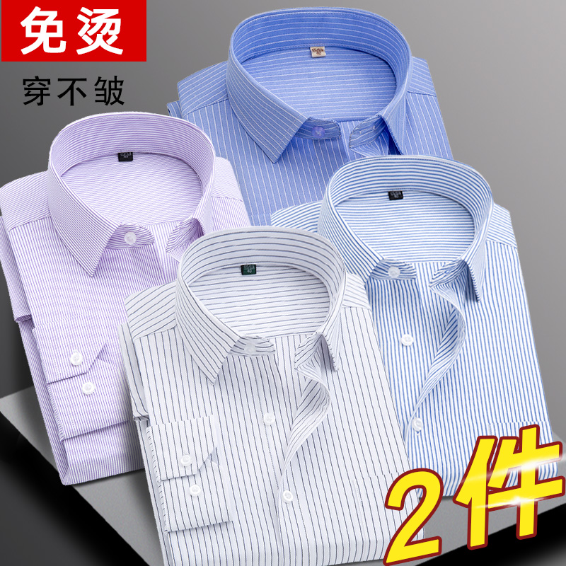 花花公子长袖衬衫男夏季薄款宽松男士休闲商务免烫条纹衬衣春秋