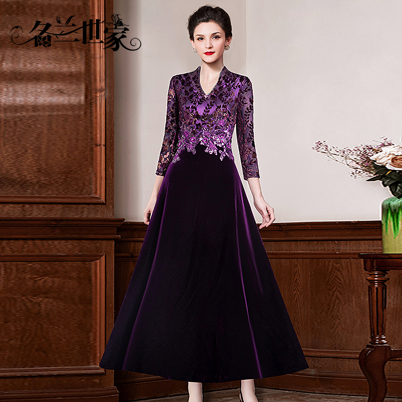 名兰世家宴会礼服轻奢小众高端喜婆婆婚宴丝绒连衣裙结婚妈妈高贵