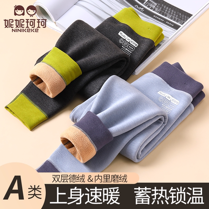 双层德绒儿童保暖裤男童加绒裤女童加厚打底裤宝宝棉裤秋冬内穿