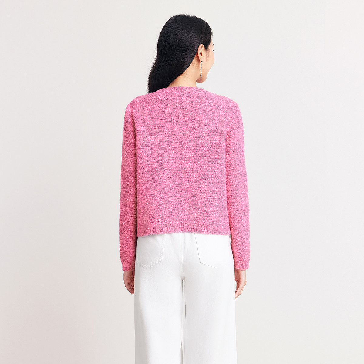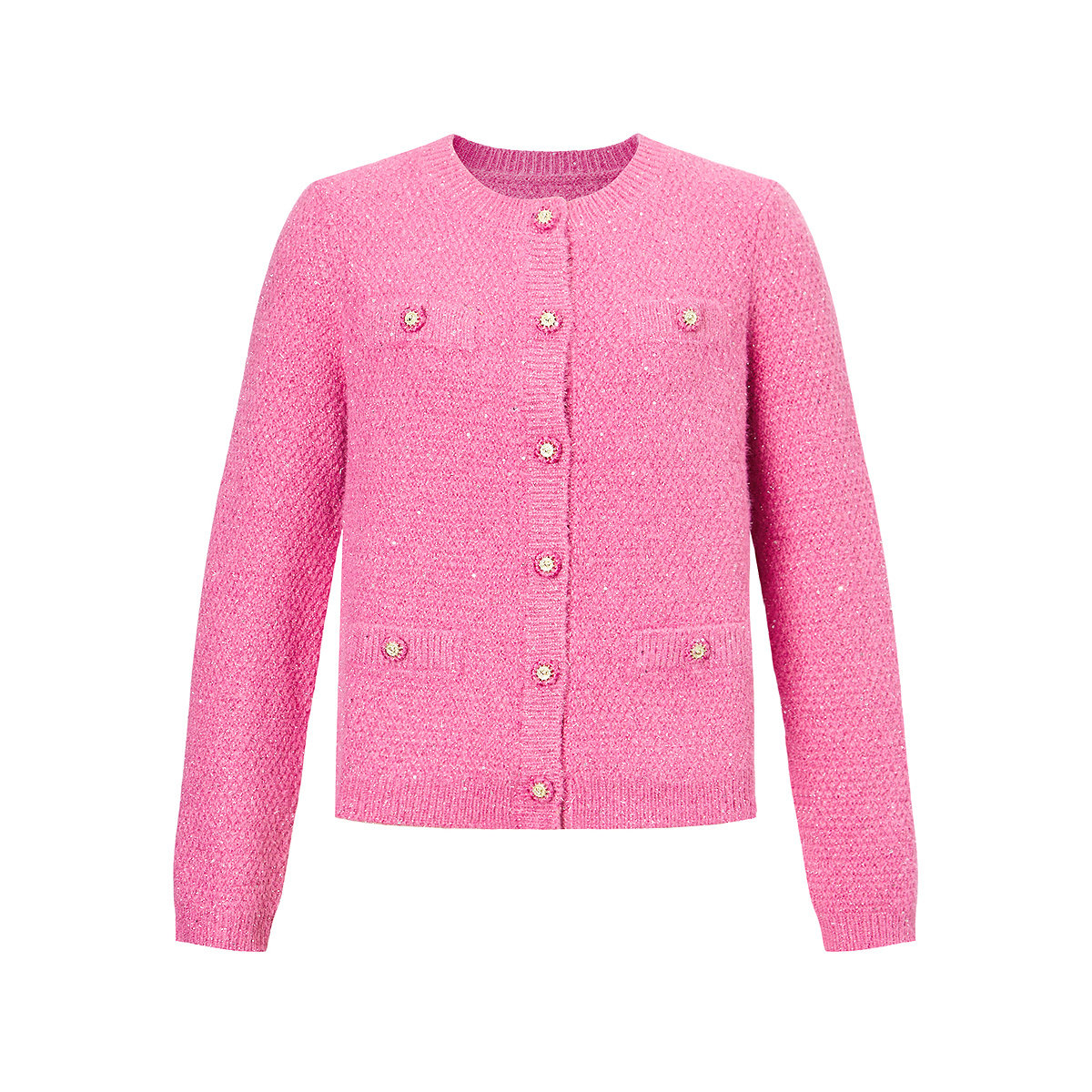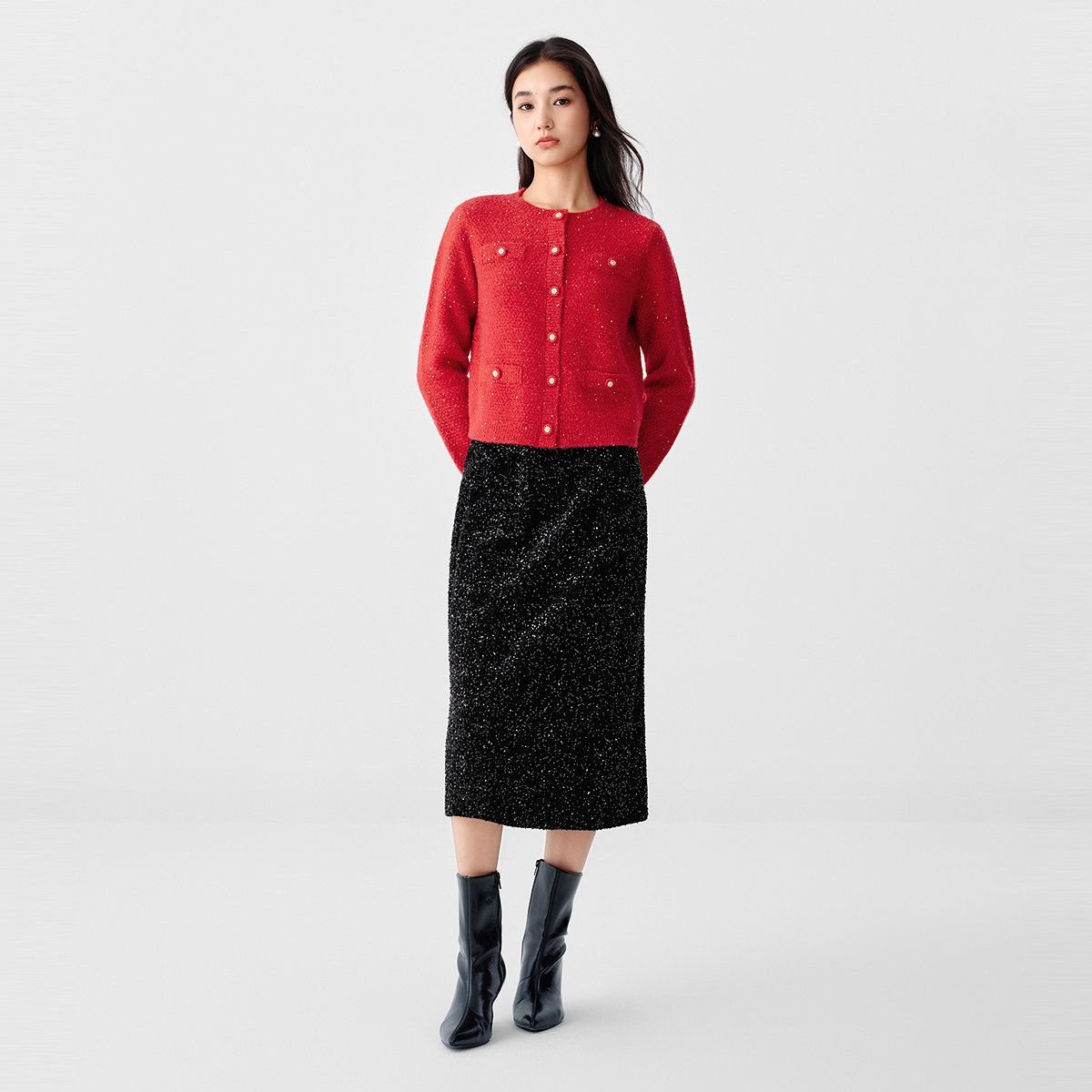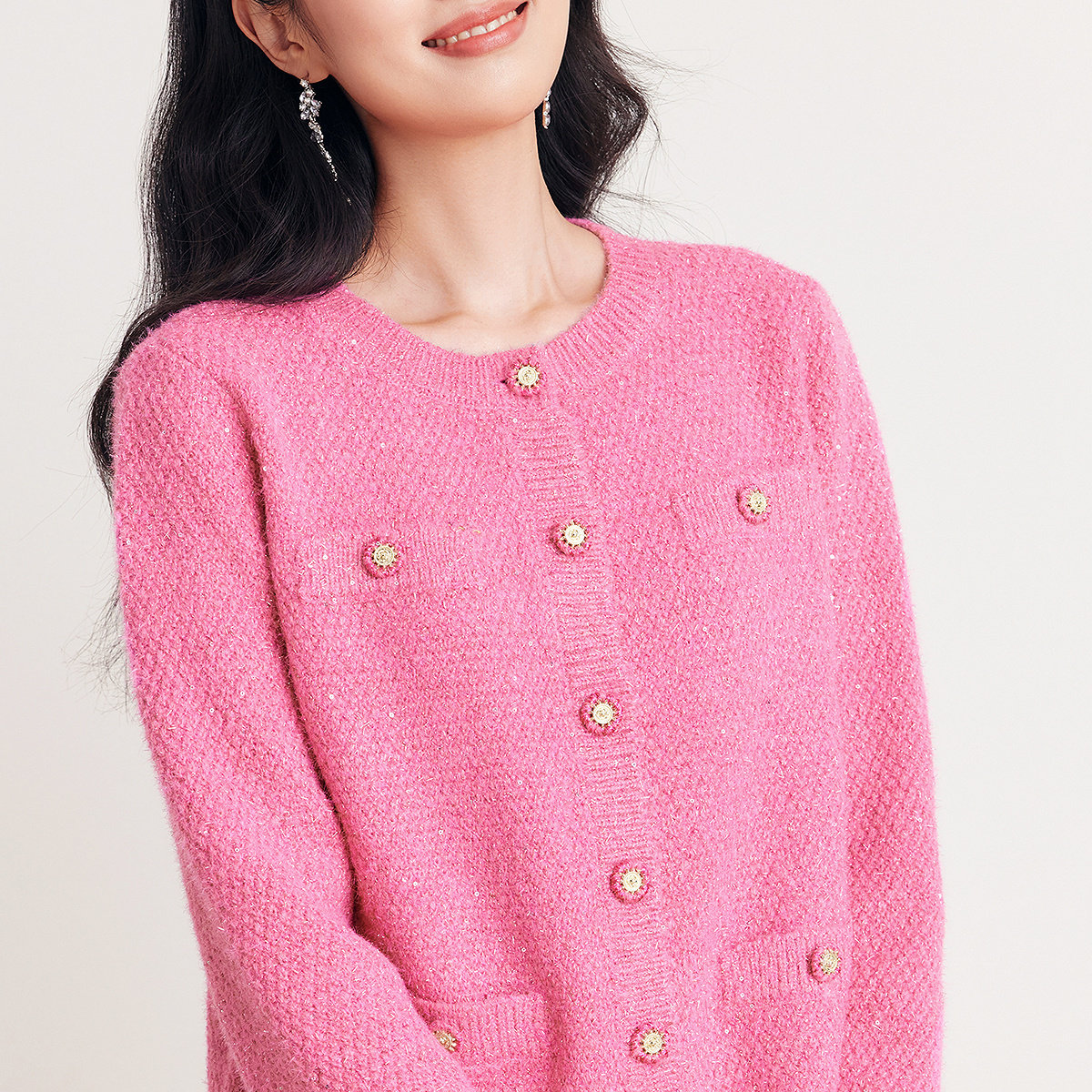 珂莱蒂尔2025年冬新款闪葱绵羊毛针织开衫女保暖红色系香风外套