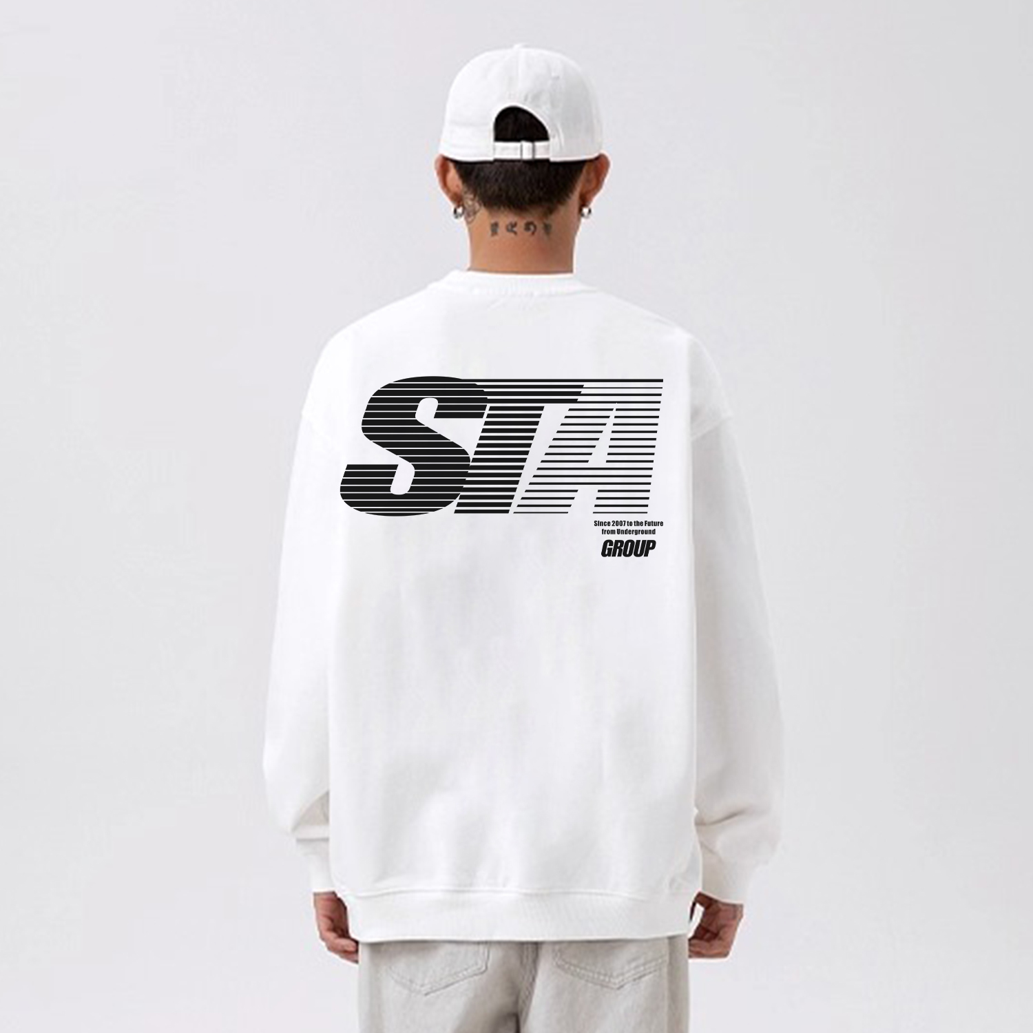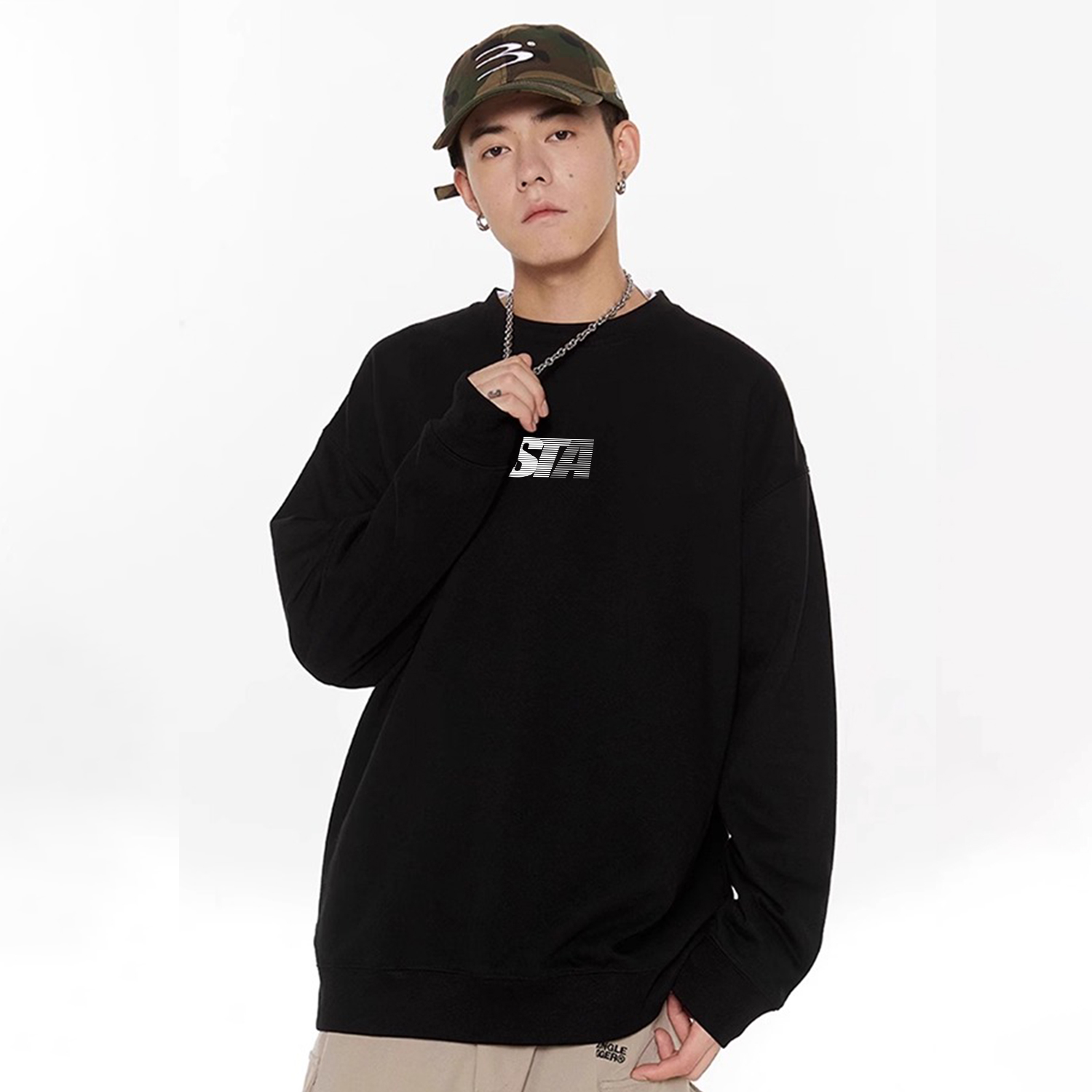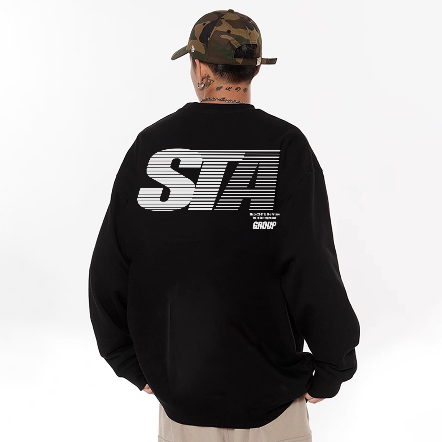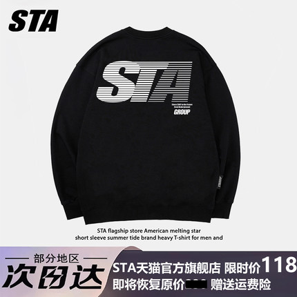 STA美式复古图形跑道字母印花圆领卫衣男女秋冬宽松休闲加绒上衣