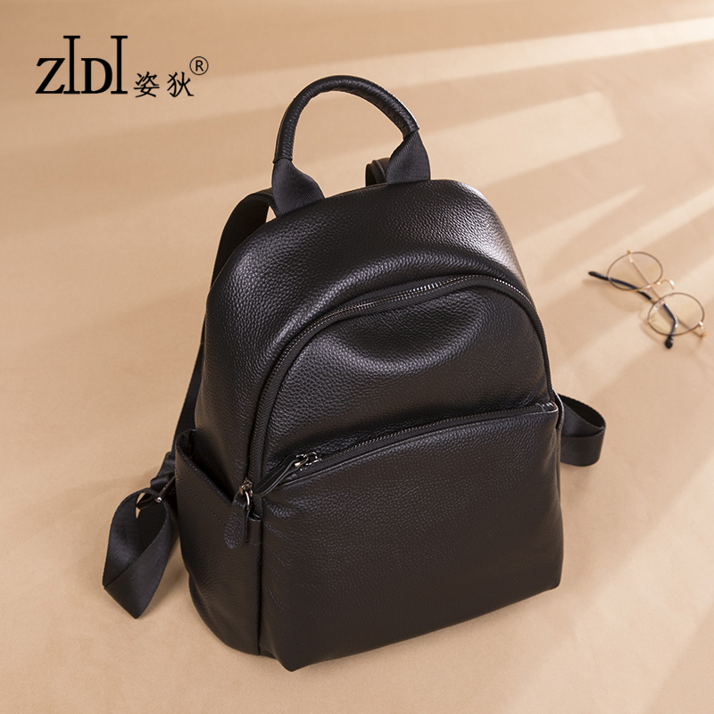 姿狄头层牛皮双肩包女2025新款韩版真皮简约防盗大容量软皮小背包